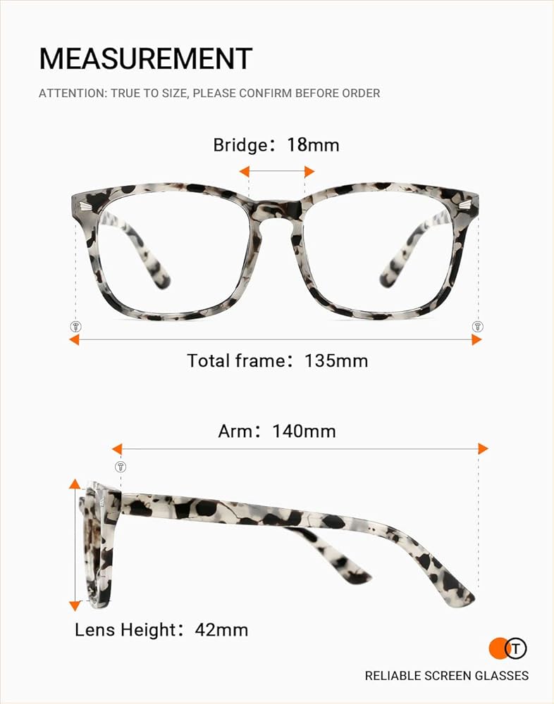 ☀Dimensions: The Stylish computer glasses comes with a arm length of 140mm, width of 53mm and bridge width of 18mm.