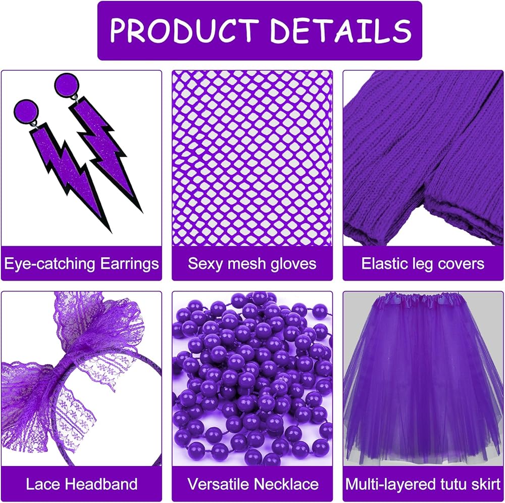 - Including: One tulle tutu skirt, one pair of arm warmer, one pair of tight high socks, one headband, and one pair of glasses.