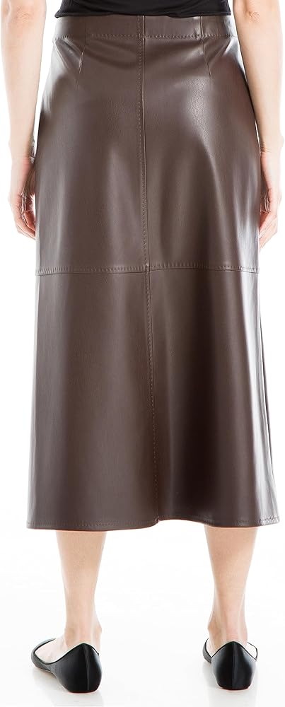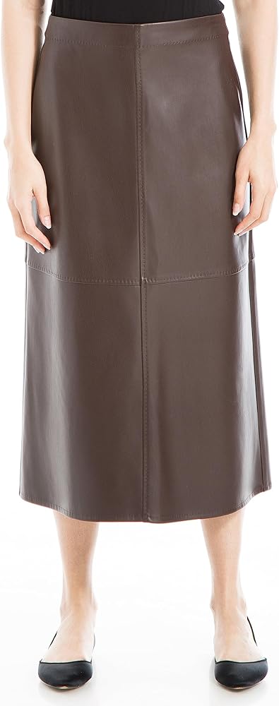 Max Studio Women's Faux Leather A-line Midi Skirt