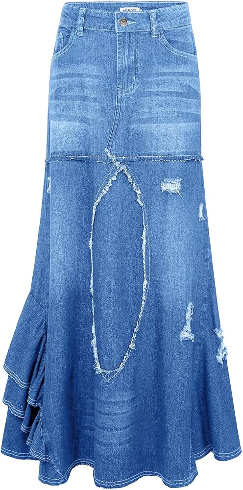 - Features: zip-fly with button closure, mid waist, classic 5-pocket, hip-wrap, stylish patchwork and destroyed holes, side lotus hem, ankle-length