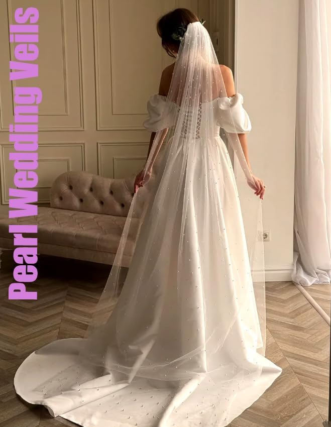 Pearl bridal veils with metal comb is made of airy soft tulle that's luxurious to touch yet understated in it's own elegance,easy and comfortable to wear.