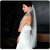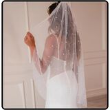 Gorgeous wedding veils feature in 1 tier and scattered with Pearls,all pearls were firmly attached which add such a nice touch.