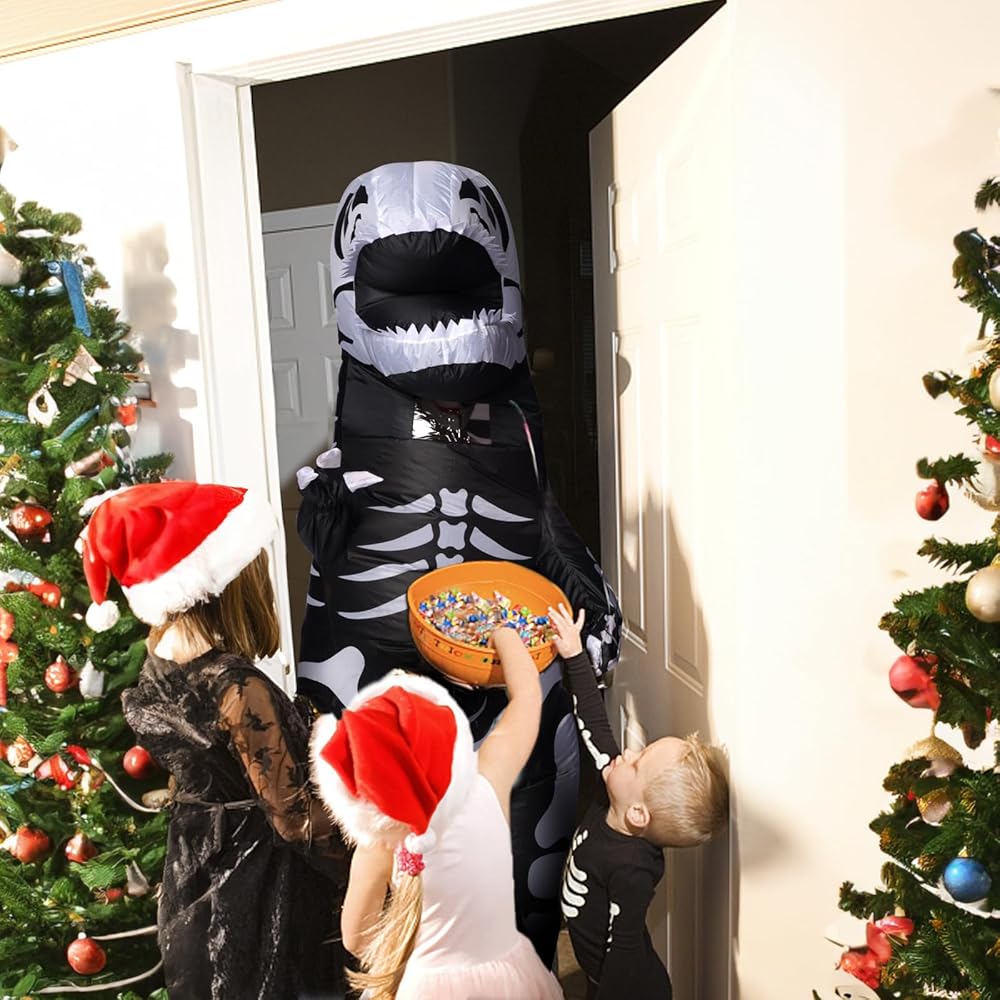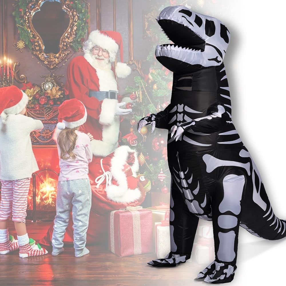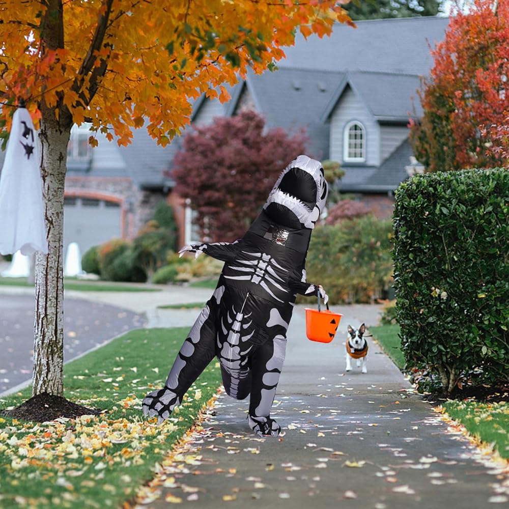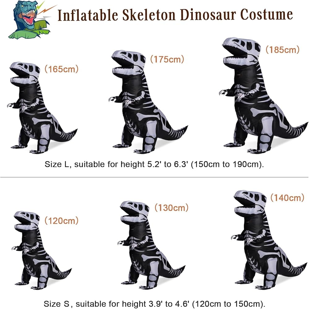 🐉【SCARY ATMOSPHERE】The realistic T. rex inflatable costume comes with a cool skeleton tattoo, so the scary atmosphere on Halloween skyrockets. Once you've finished dressing up as a 'real' T. rex, let's go screaming mad on Halloween!