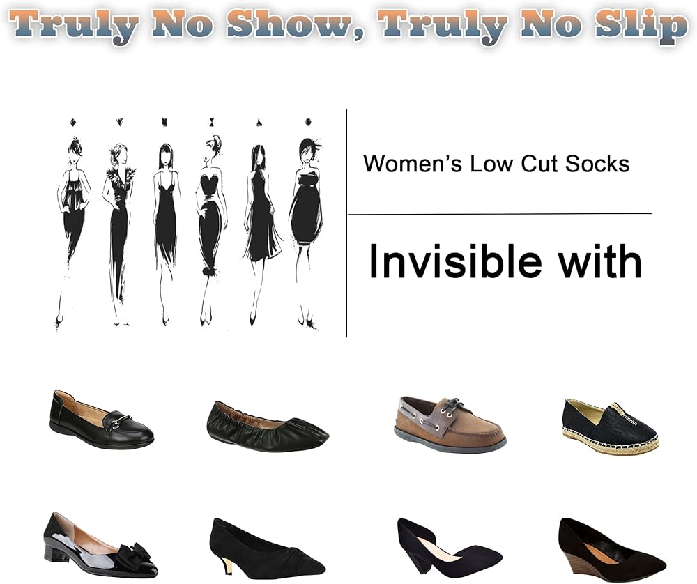 【Low Cut Invisible Look】: Foot Amazing liner socks provide a seamless look to your outfit. Great for women to pair with most sneakers, dress shoes, athletic sport shoes, boat shoes, casual shoes, canvas shoes, and loafers, but also for very low-cut shoes, such as flats, high heels, pumps, and pointy shoes, ballet flats, stilettos, dress shoes