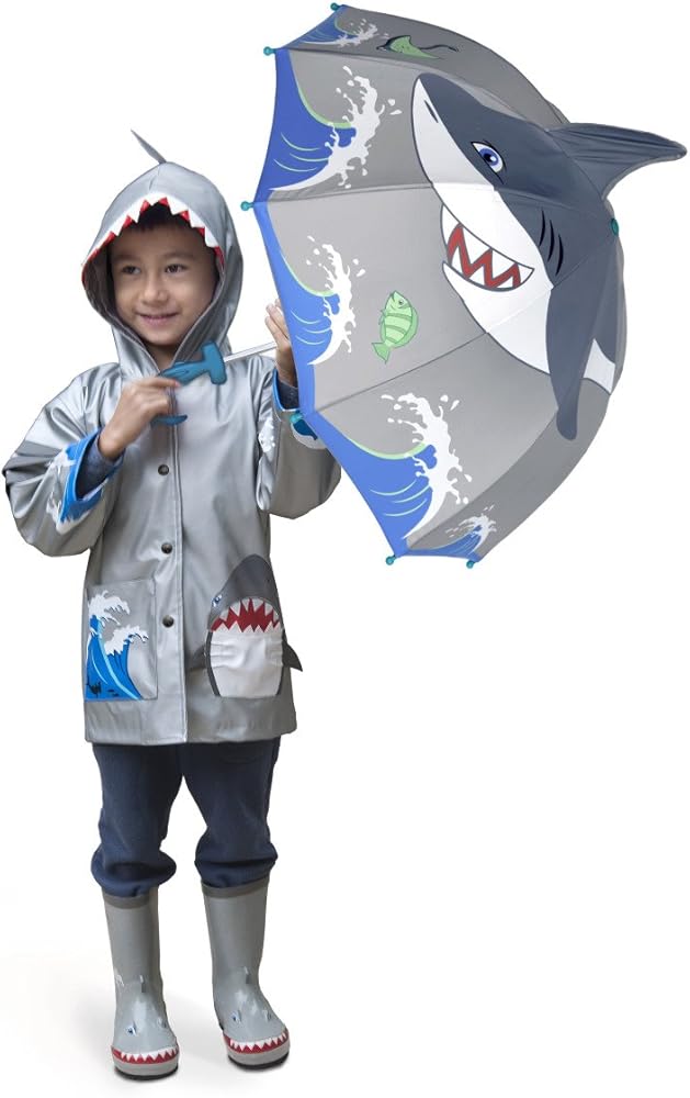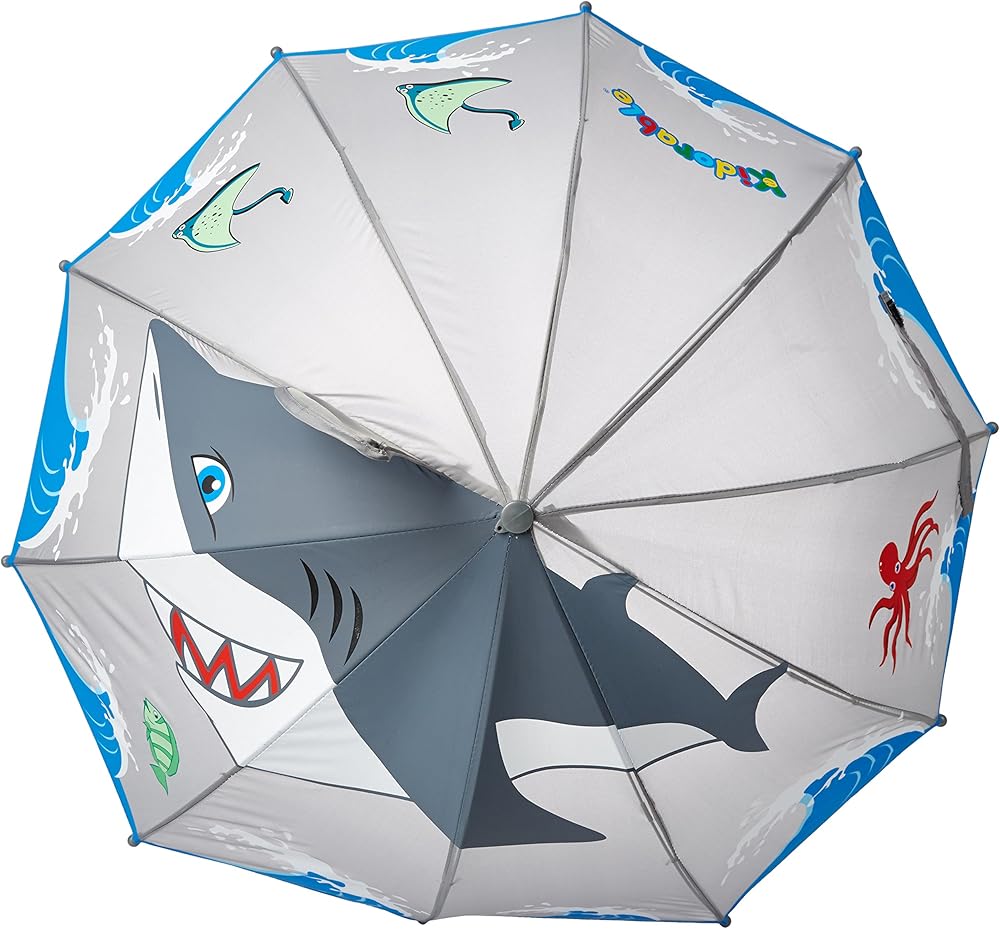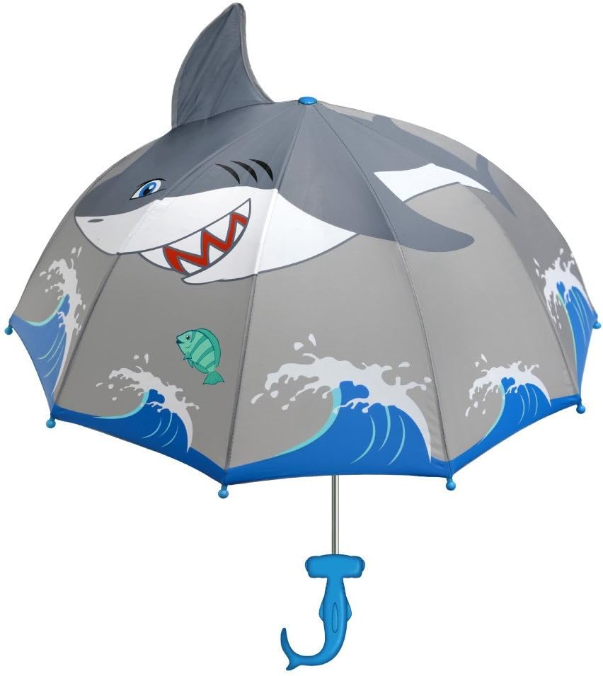 Kidorable Shark Grey Nylon Umbrellas are lightweight and kid-sized for little hands. Like all Kidorable umbrellas they have a fun, easy to grip handle, a Velcro strap for quick storage, and safety caps on the tips of the ribs to protect little faces. To complete the outfit, get matching Kidorable Shark rain boots, coat, backpack and more! Most Kidorable products are designed for children aged 2-6. Many of our products are available for babies, and children as old as 11. Kidorable delights both children and the adults who love them by transforming everyday, functional kids' accessories into objects that excite their imaginations and enrich their lives at play. Find the gear your kids will actually beg to wear. Raincoats, Rain Boots, Umbrellas, Backpacks, Hooded Towels, Hanger Sets, Knit Gloves, Hats, and Scarves, and more. Here you'll find styles to spark any kid's imagination—Shark, Dinosaur, Lucky Cat, Ladybug, Butterfly, Frog, and Lotus for animal and nature lovers. Pirate, Fairy, Mermaid, Ballerina, Fireman, Space Hero, Dragon Knight and Fireman for kids who dream big. Plus Dora the Explorer and SpongeBob SquarePants for kids who want to be their favorite characters. We believe in the power of imagination to make everyday families happier. Because a lot is at stake. More and more, children are forgetting how to create, to think, to explore, to connect. Over-scheduled, under-engaged, dulled by TV and video games, our kids are less and less able to amuse themselves, solve their own problems, or tell the difference between the character in the movie and the one trying to sell them cereal on TV. It's time someone said there's a better way. Someone like us. Someone like you. It's time that children and the adults who love them rely more on human beings for connection and guidance and entertainment instead of screens with shiny lights and buttons. It's easy. All it takes is someone who cares. And a little imagination. Won't you join us?
