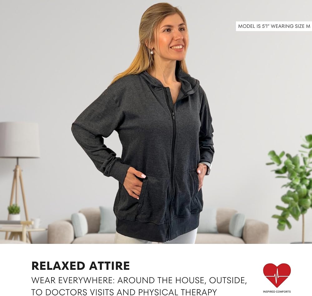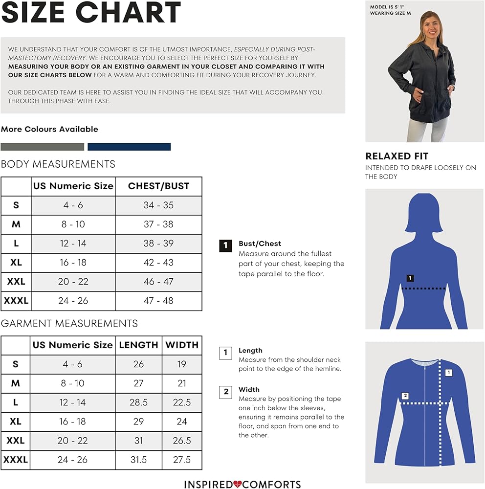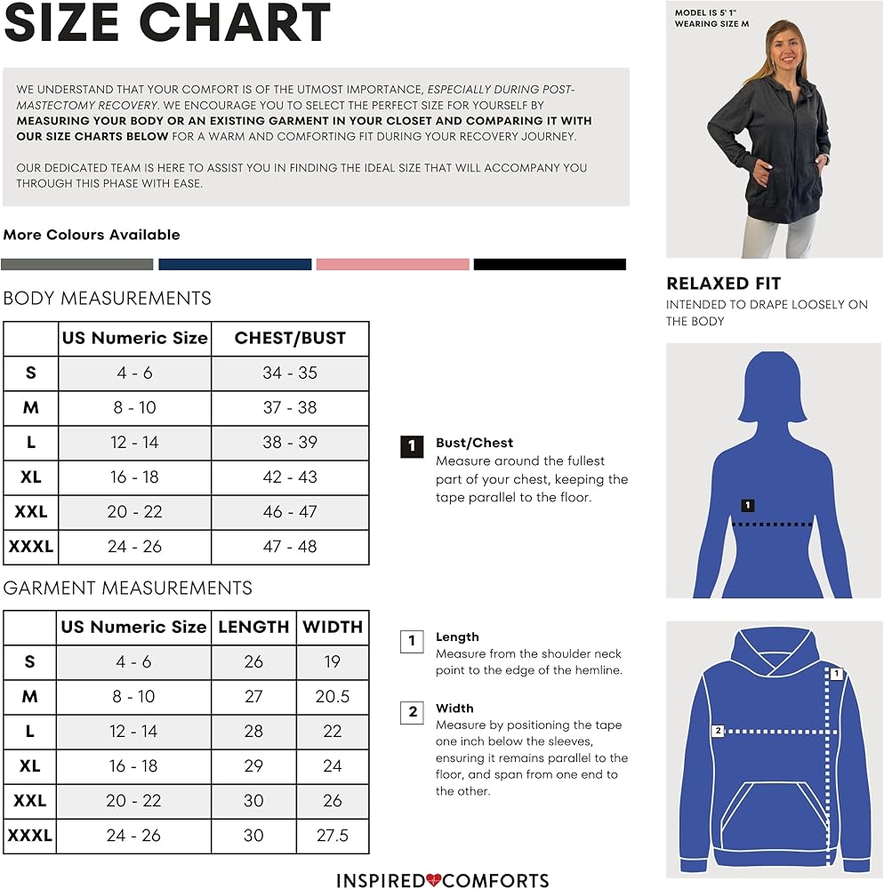 VERSATILE & MULTIFUNCTIONAL, A THOUGHTFUL GIFT - Wear on its own or pair it with a mastectomy bra, tank top or undershirt; zip up with the hood down in those cold moments or zip down when you feel warm; Mix & match colors with your favorite outfit or casually & stylishly cover up without the need to dress up. Thoughtful gift to support single and double mastectomy patients and cancer fighters. Perfect for Post Mastectomy Recovery, Breast Surgery Recovery, Breast Reduction, Breast Augmentation