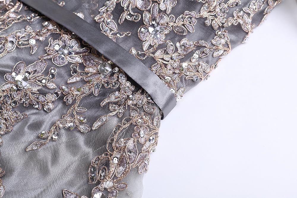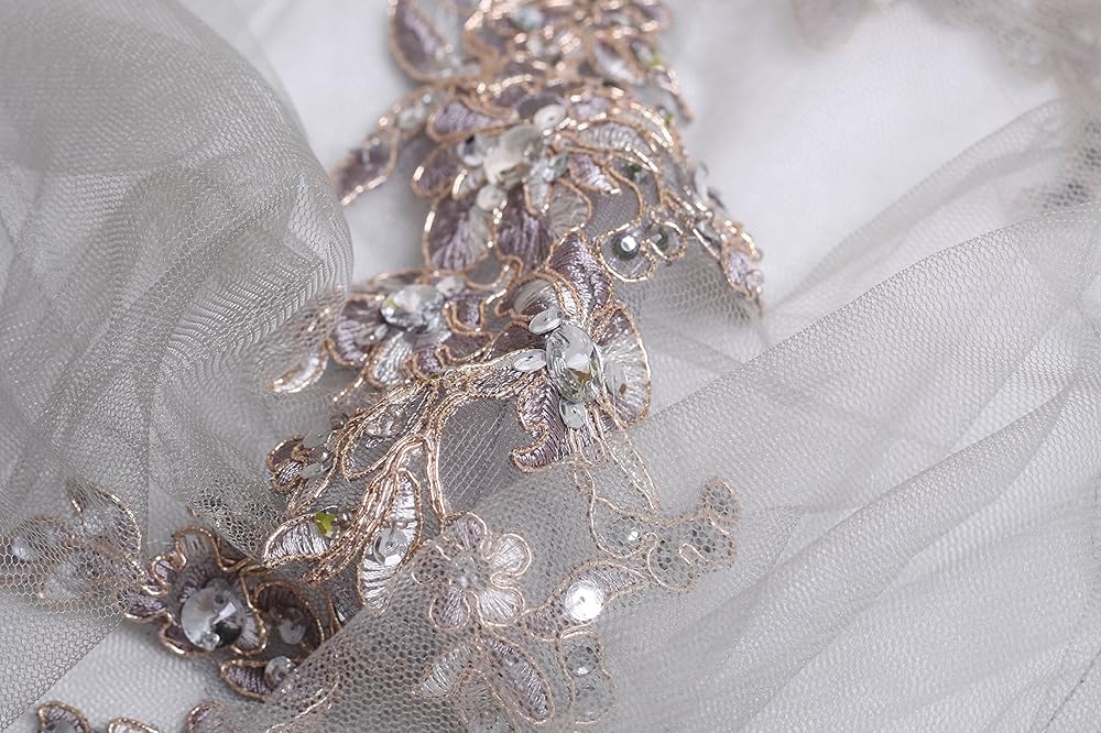 Made from high-quality materials, this dress features intricate embroidery and an illusion neckline for a timeless and classic look, with built in bra pad and double tulle layers.
