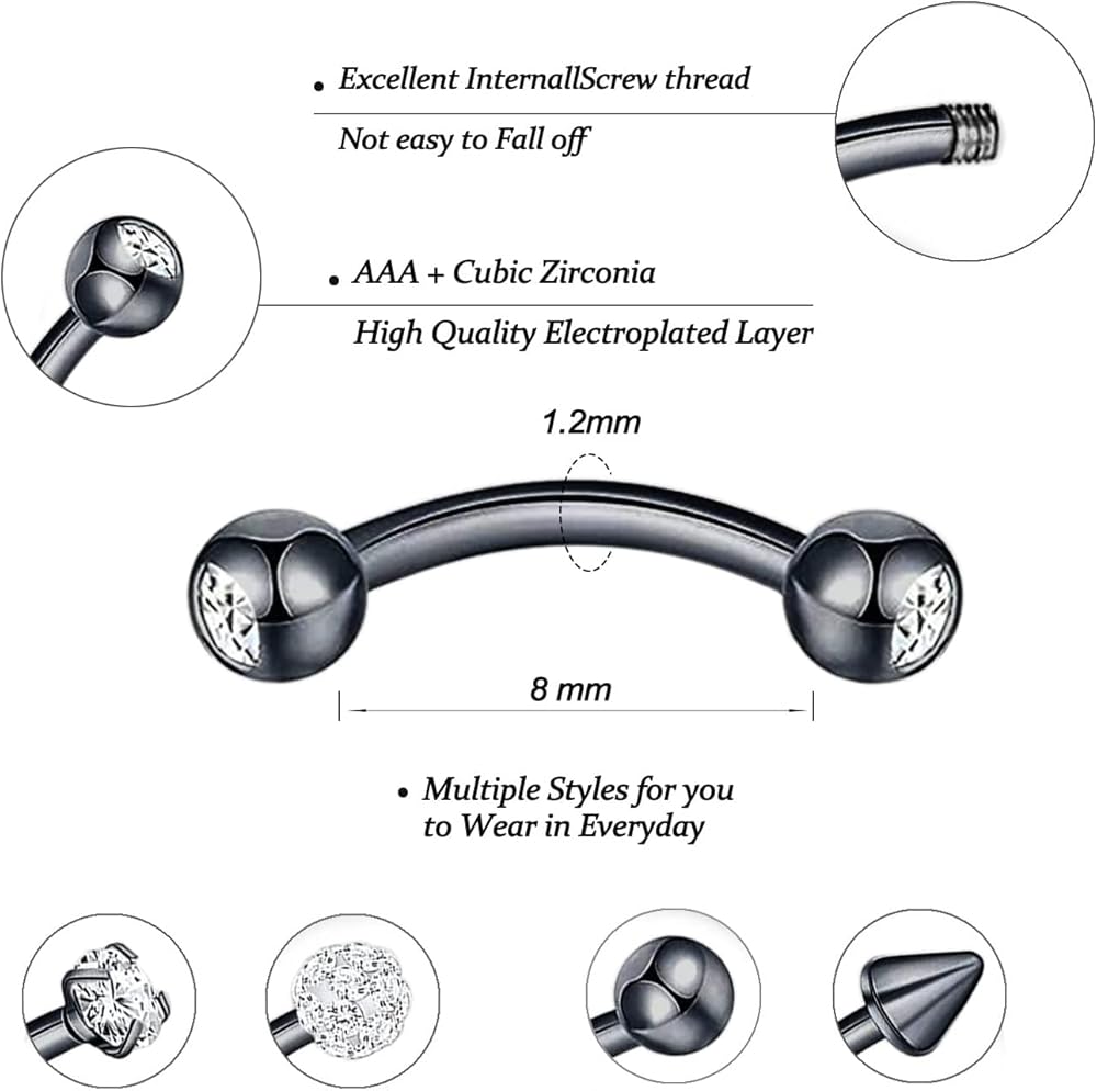 3.HYPOLLERGENIC MATERIAL: Eyebrow Piercing Jewelry Made Of 316L Surgical Stainless Steel, Hypoallergenic and Suitable For Sensitive Skin. Great Color Electroplated, Long Time Color Lasting,Highly Polished Surface to Be Smooth, Safe and Comfortable to Wear.