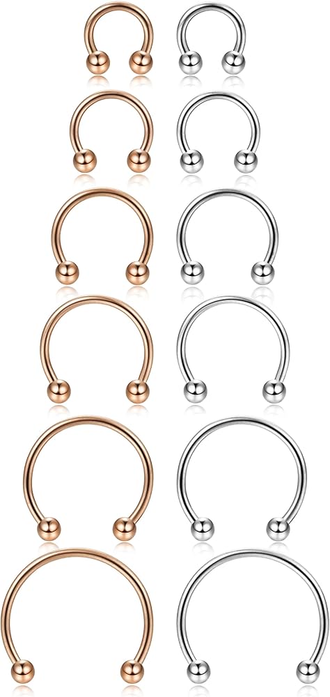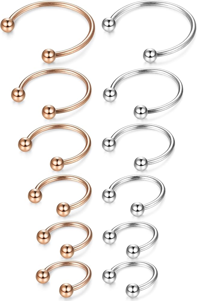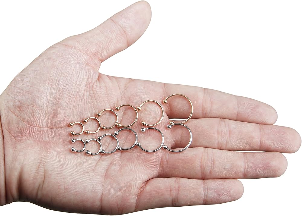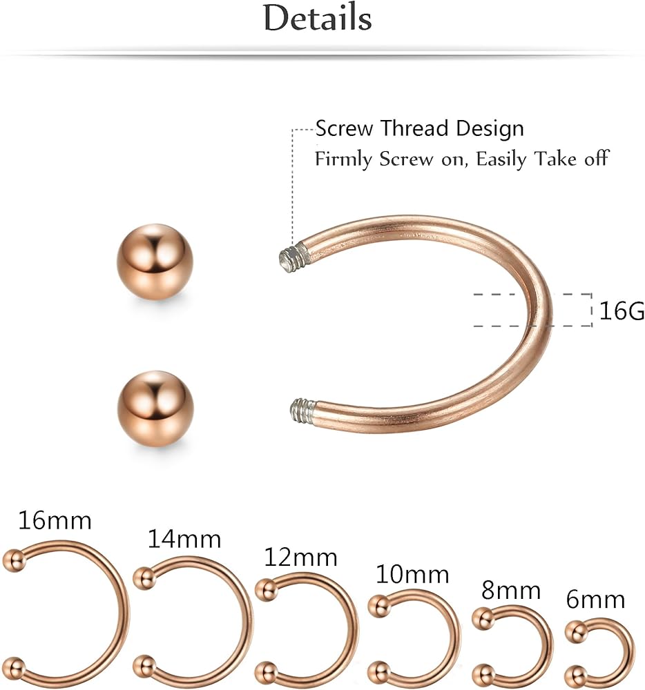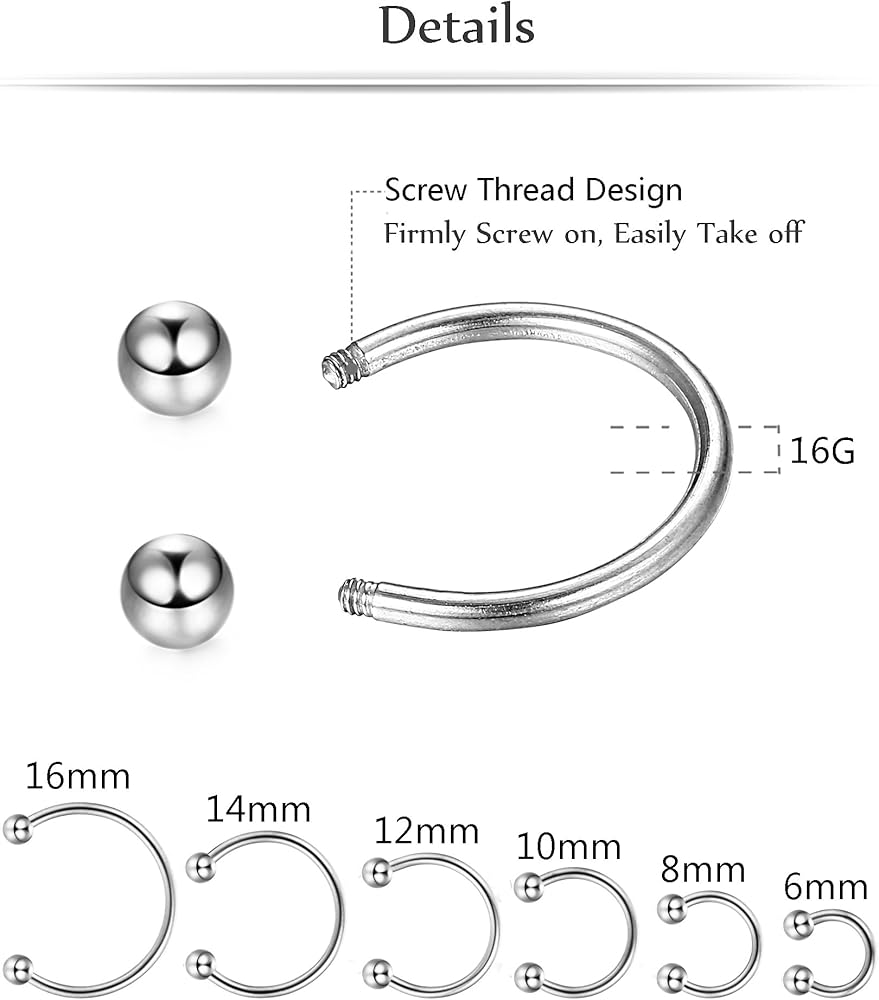 MULTIFUNCTIONAL--16 Gauge(1.2mm) Bar Thickness, Inner Diameter About: 6mm, 8mm, 10mm, 12mm, 14mm, 16mm, Different Sizes Meet Your Various Needs, Perfect as Nose Ring, Ear Piercing, Lip Ring, Nipple Ring and other Body Piercing