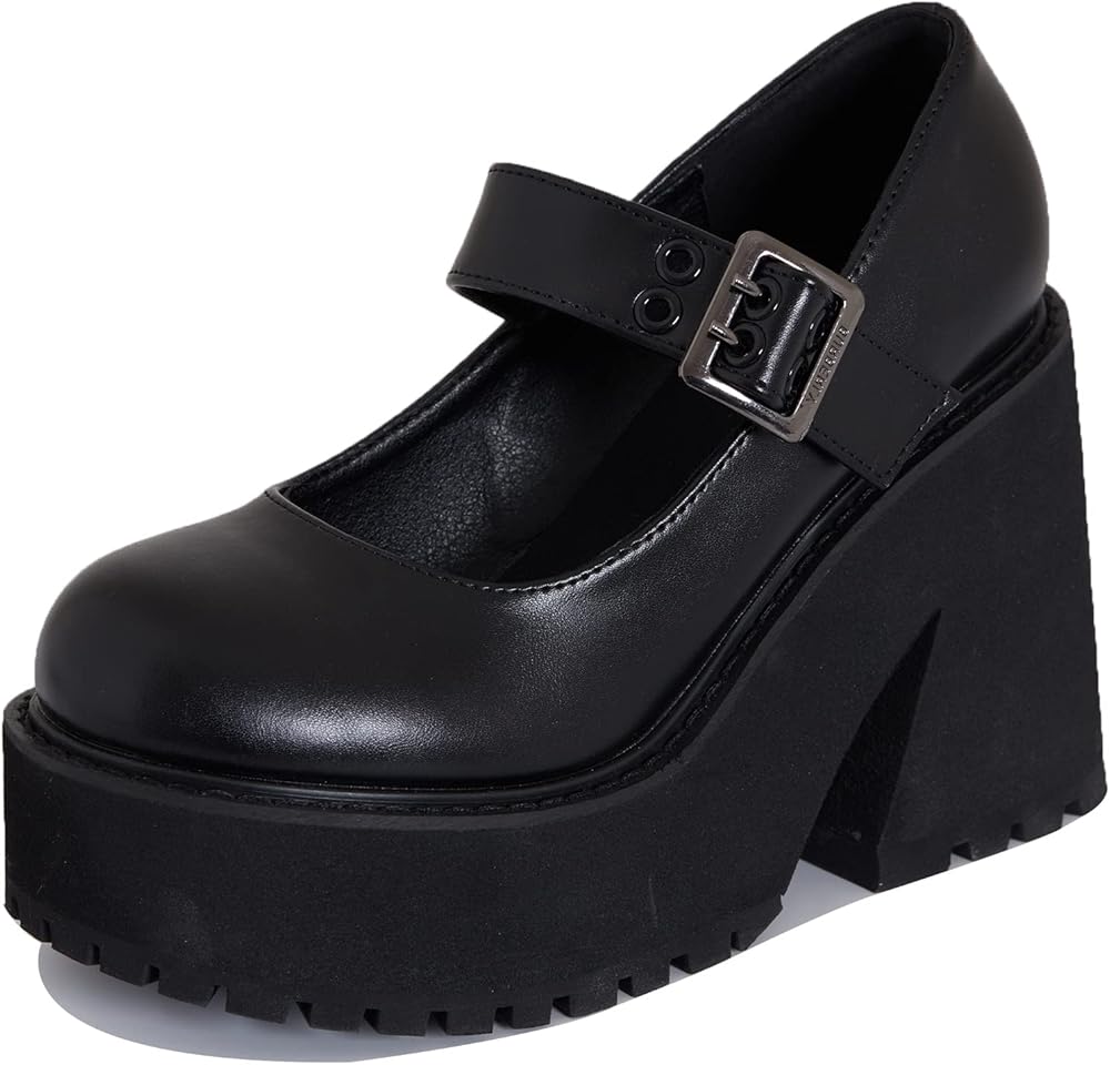 AMINUGAL Black Platform Wedge Sandals for Women - Chunky Block Heel, Closed Toe, Goth Heels, Dressy Summer T Strap, Mary Jane Shoes, Cute Buckle, Pumps, Adjustable Ankle Strap