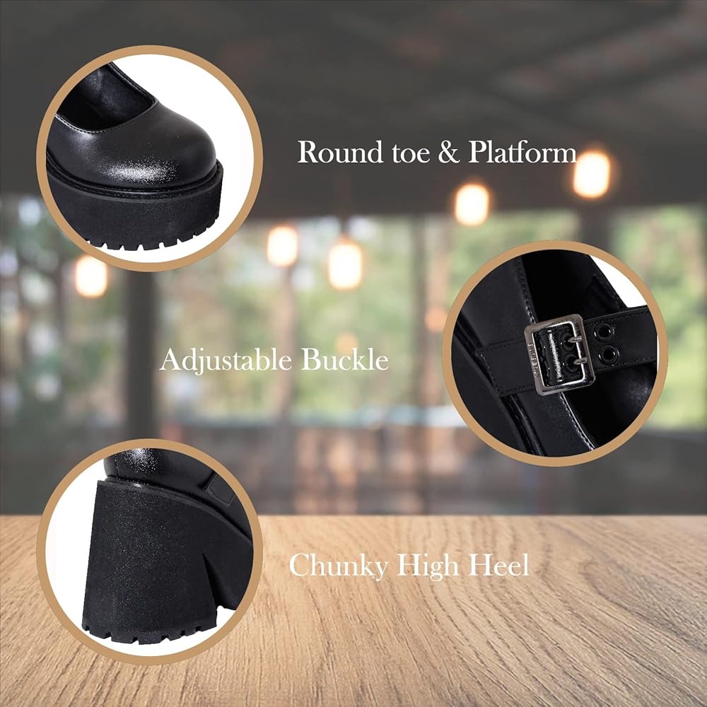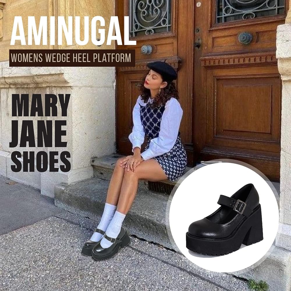 {Design}wedge heel,round toe, buckle strap.mary jane shoes upper is high quality PU leather and Buckle fastening,Adjustable buckles ankle strap pumps.