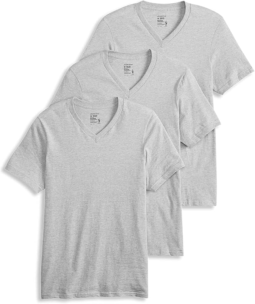 The Jockey Classic V-Neck T-shirt is a comfortable favorite you'll reach for daily. Featuring a reinforced collar that stays flat and keeps its shape, tag-free design and just-right length for tucking or untucking. The relaxed, lightweight fit is perfect as an everyday staple and works well under anything; mix with dress clothes to look your best in a suit and tie or wear with a pair of jeans for a more casual look. Plus, it's been enhanced with our latest innovations Staycool technology wicks away moisture to help you stay cool and dry, while StayNew technology keeps it looking and feeling new by reducing long term pilling, improves color retention and creates a softer feeling fabric.