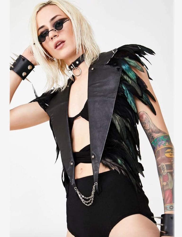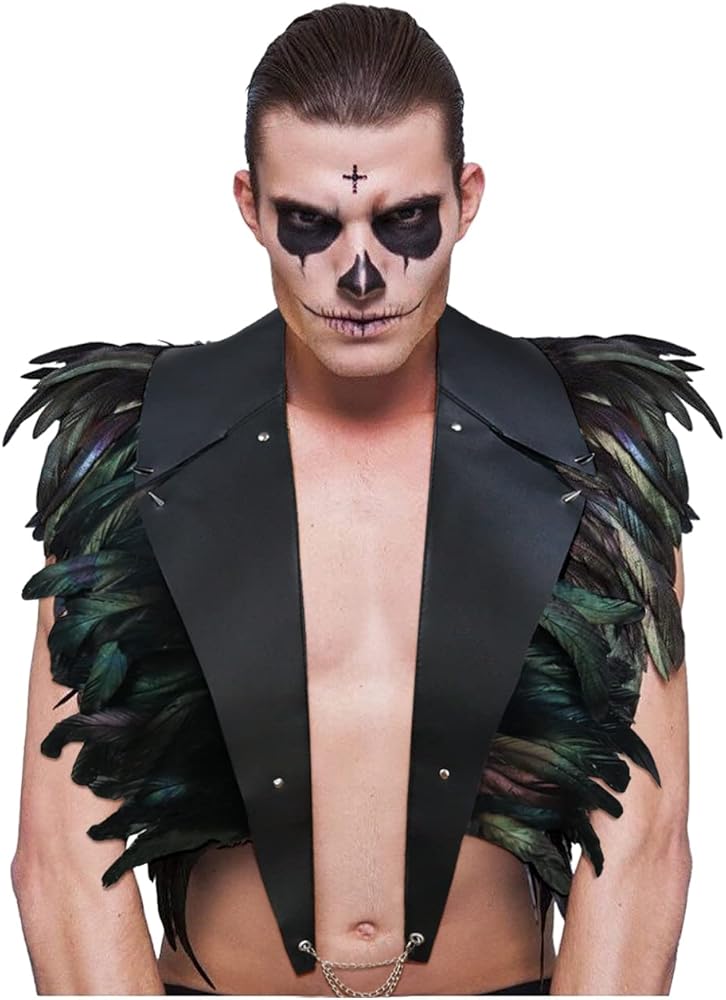 【Style】Joukavor goth feather capelet epaulettes is an outstanding accessory for Halloween costume, Vampire costume, Raven costume, Burning Man costume, Witch costume, Devil costume, etc.