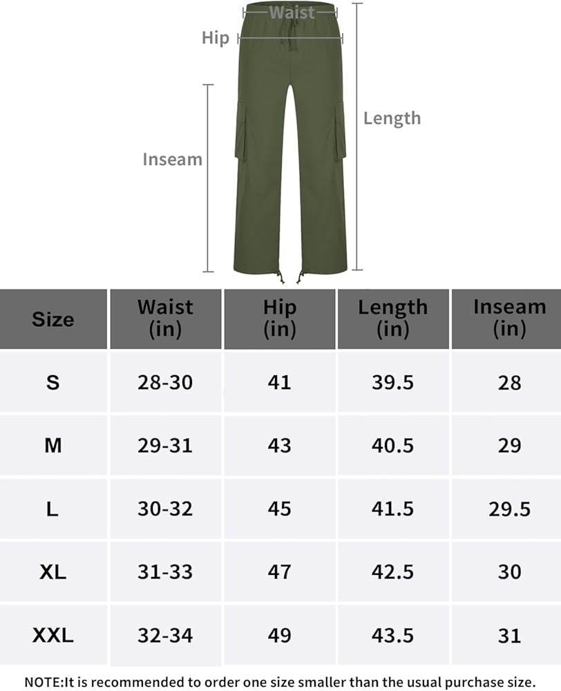- Casual Cargo Pants are standard size. If you prefer a looser size, you can choose a larger size.