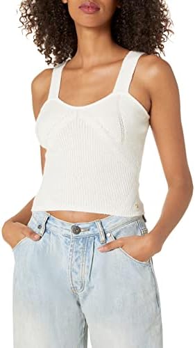 GUESS Women's Sleeveless Essential Serena Rib Mix Sweater, Cream White, Extra Small