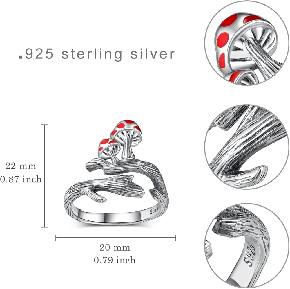 🍄Material: 925 sterling silver, Nickel-free, Lead-free, Cadmium-free and Hypoallergenic, Especially for those with sensitive skin and will not be burdensome to wear on your hands.
