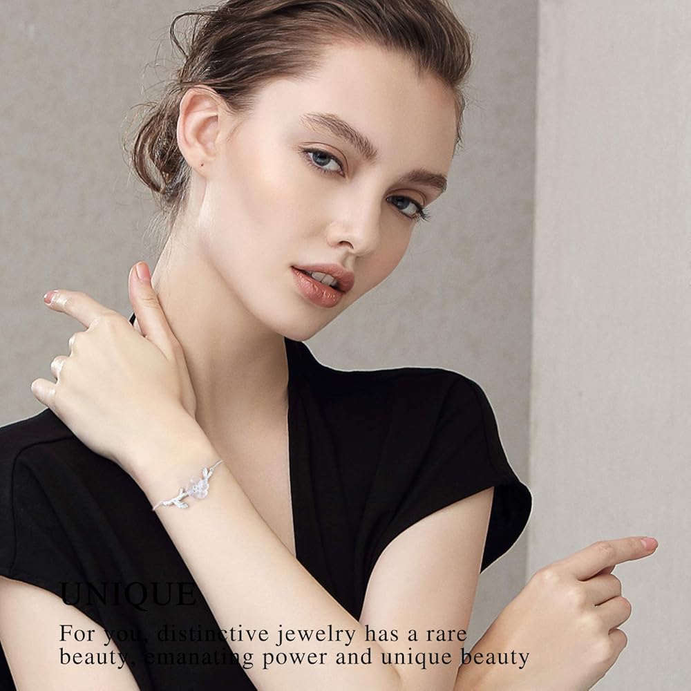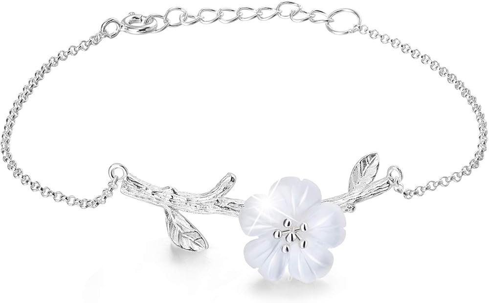♥Christmas Gifts♥925 Sterling Silver Bracelet Simulated Crystal Flower in the Rain Adjustable Cute Flower Bracelets with Chain length 6.5''-7.6'', Handmade Unique Jewelry Gift for Women and Girls