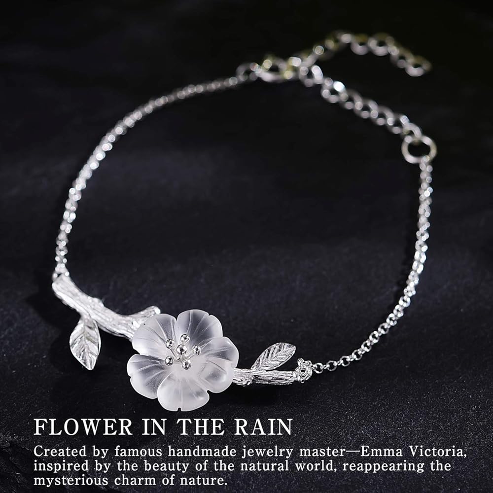 ♥Unique Design♥ " Flower in the Rain Bracelet " is created by a famous handmade Jewelry master--Emma Victoria, find inspiration from nature's animal and plant world, wearing this handmade and unique design s925 silver flower bracelets makes women with unique and noble elegant temperament.