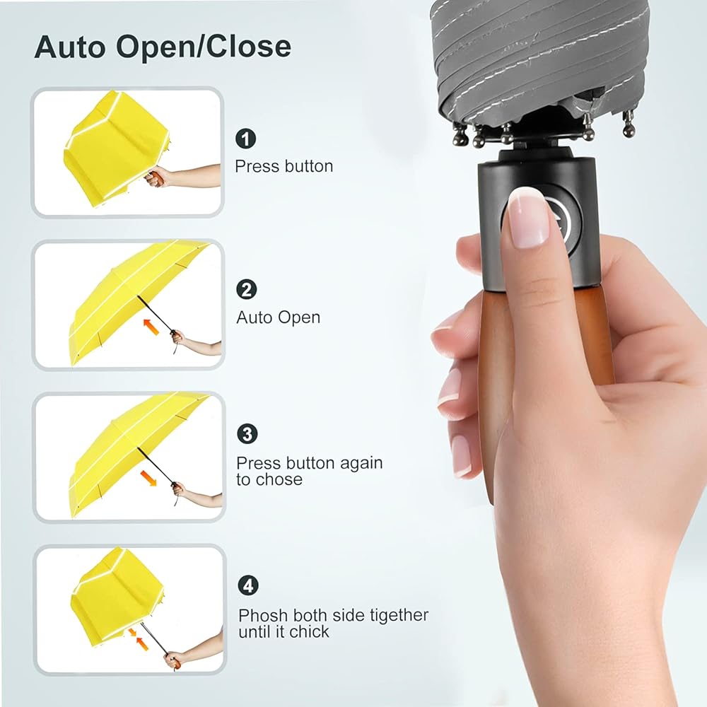 ☂【Auto Open And Close】: Automatic Open/Close function allows for easy one hand operation, just press the button of handle it will open and close automatically within seconds.