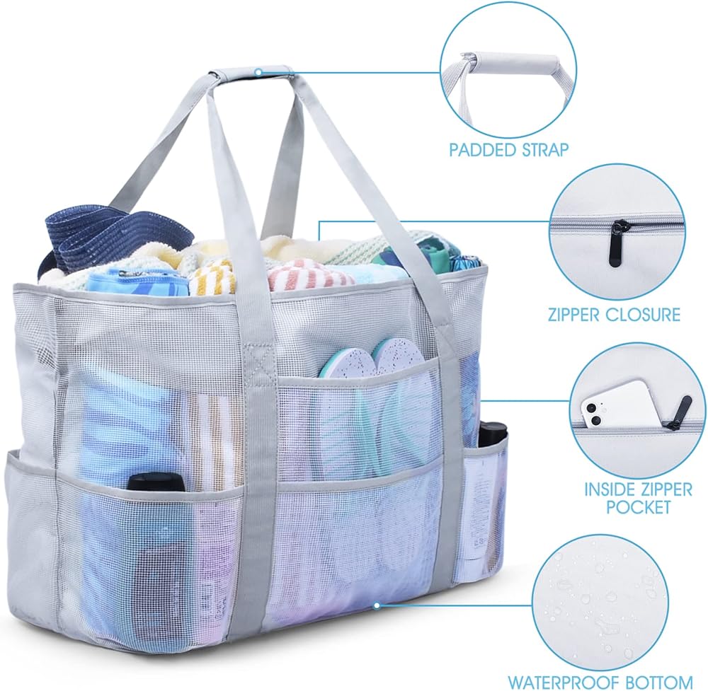 Selected Mesh Waterproof Material - After mass market research and thousands of tests, we apply a unique superior mesh material, which is verified to be more durable, lighter, and last 5 years longer than ordinary mesh beach bags.