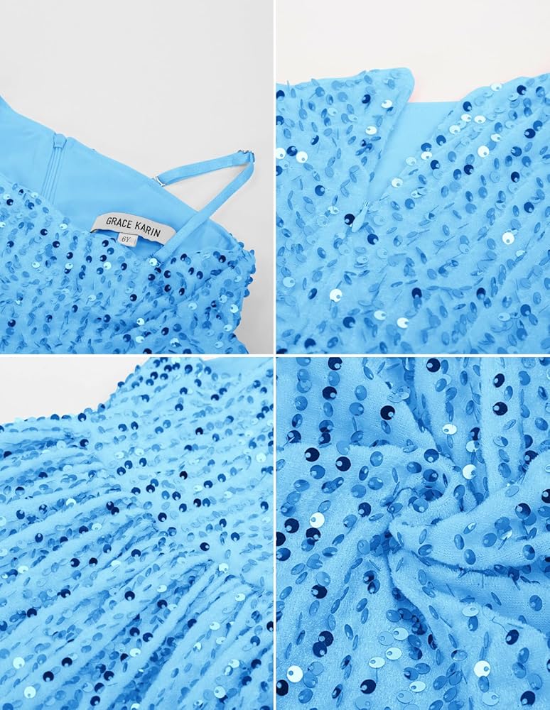 【Shiny Sequins】Every princess wants some sparkle. GRACE KARIN girls sequin dress is covered in sparkly sequins made of 98% polyester and 2% viscose, lined with super soft fabric, skin-friendly and breathable, no harm to kids' skin. Your princess will love it.