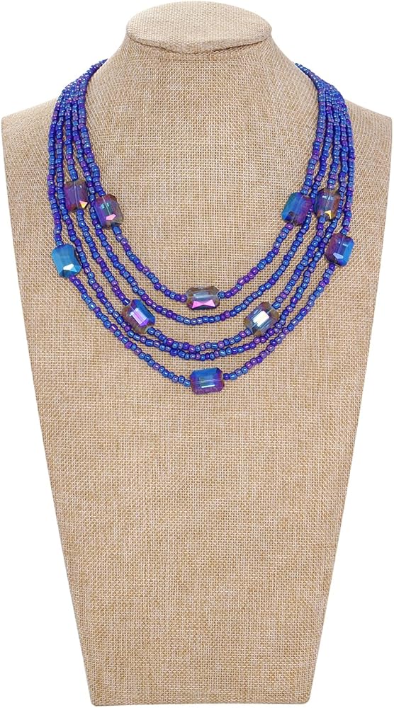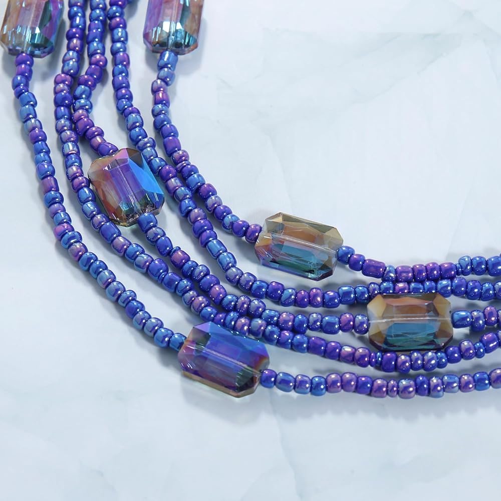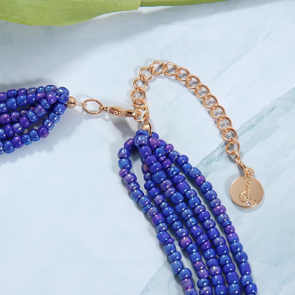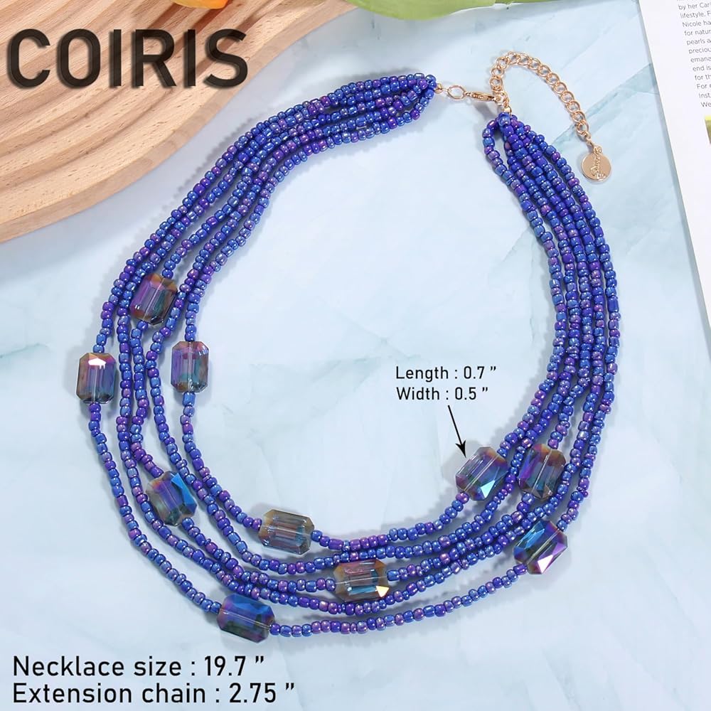 Coiris Multi Seed Bead Strand Necklace with Acrylic Rectangular Beads Chunky Bib Statement Rice Beads Collar Necklace