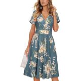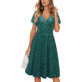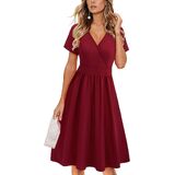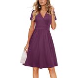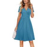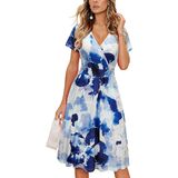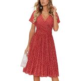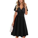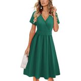 Feature: Sexy deep v-neck, short sleeve wrap dress, knee length dress with pockets, casual solid midi dress, empire waist pattern dress, floral party dresses for women, womens sun dress, this cute fit and flare dress makes you fashionable and charming