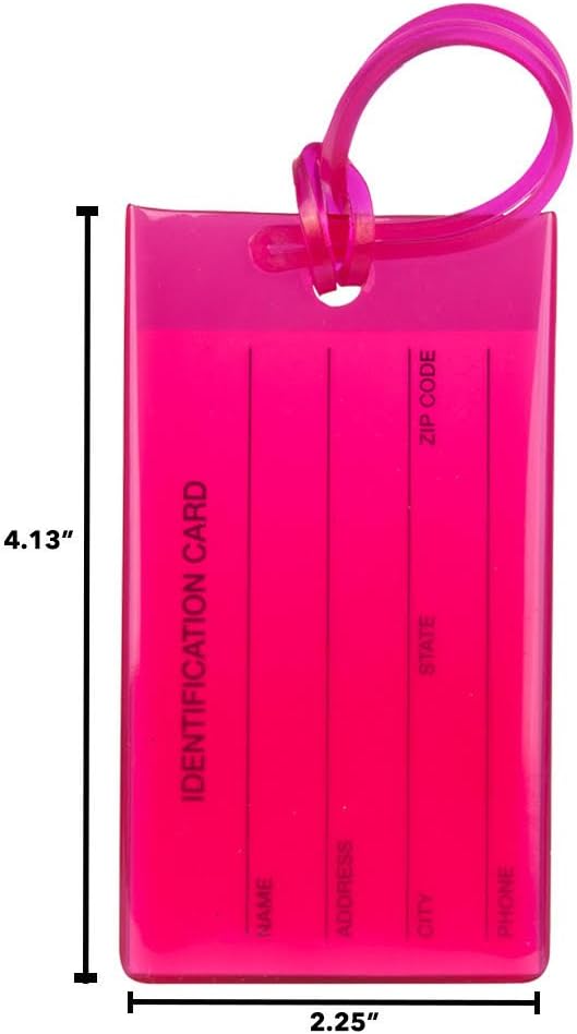 4 HOT PINK LUGGAGE NAME TAGS: You will be receiving a set of 4 hot pink bag tags to use while traveling on suit cases, bagage, carry-ons, cruise ships, checked bags, handbags, sport, duffel and golf bags, briefcases and backpacks.