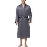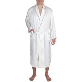 Kimono collar, loop on the back neck for easy hanging, 2 front pockets and long sleeves. Inside ties closure and matching belt for easy adjust to your fit, nice french seam finish.
