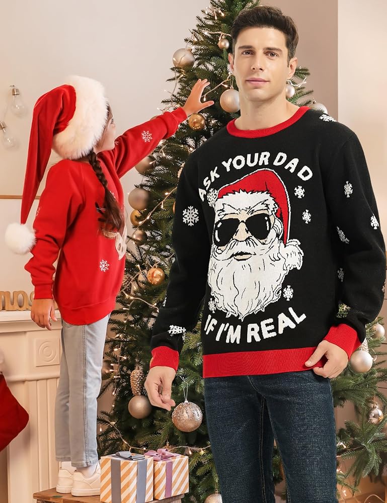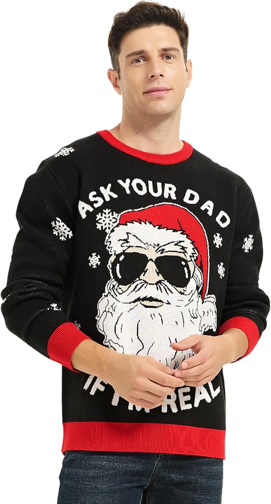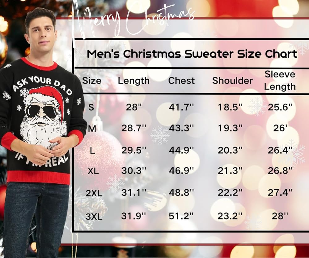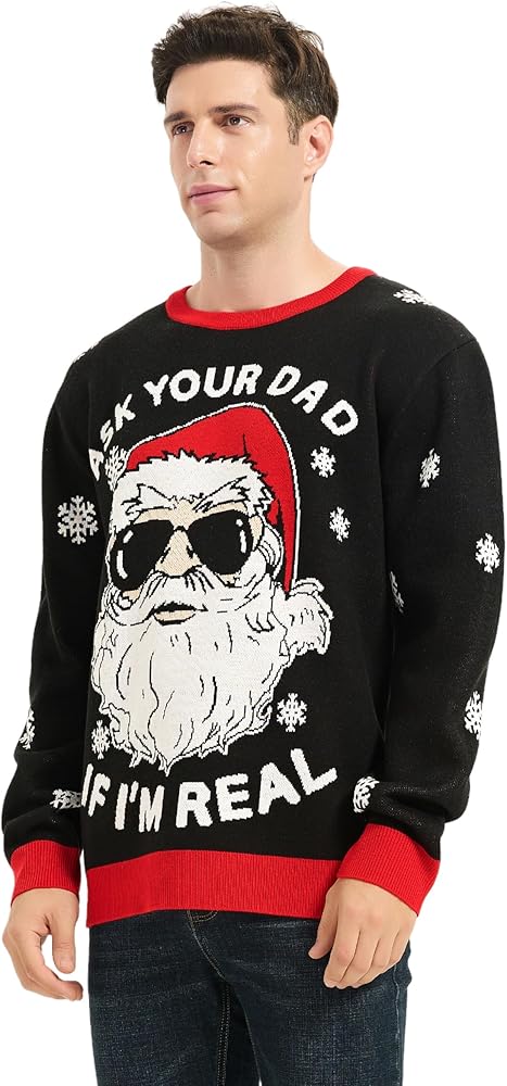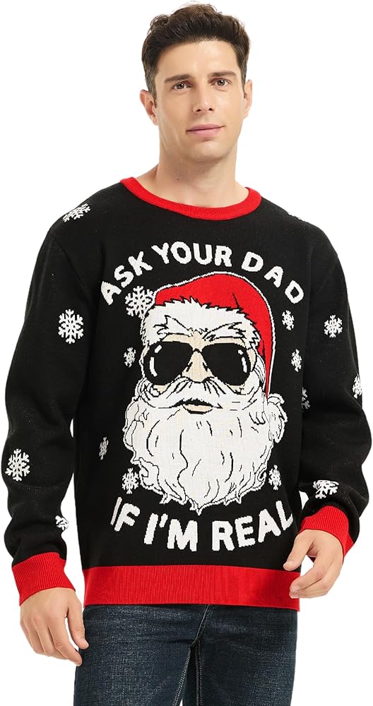 Soft & Comfortable Material: The funny super ugly christmas sweater men is made of hyper-comfy jacquard knit and acrylic fabric,breathable,soft and durable,providing both warmth and comfort during the chilly winter months.Our inappropriate men's office ugly christmas sweater is well cut and tightly knitted,with more attention to detail and durability.Make you feel comfy,cozy and happy throughout your holiday with our tacky christmas vacation sweaters.Perfect for xmas family couples sweaters