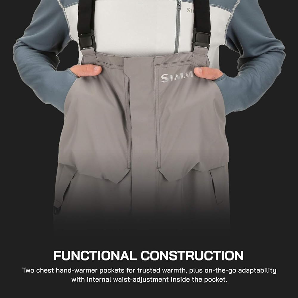 WATERPROOF COLD-WEATHER OVERALLS: Stay dry with the Simms insulated work bib. These bibs feature fully taped seams for a 100% waterproof performance. The seams ensure there is no water leakage when you're fishing, snowmobiling, or walking in the snow, wind, ice, or rain.
