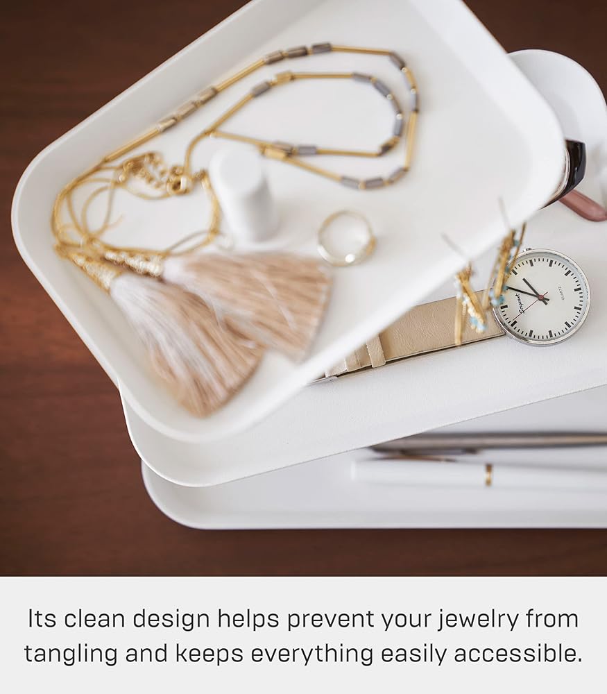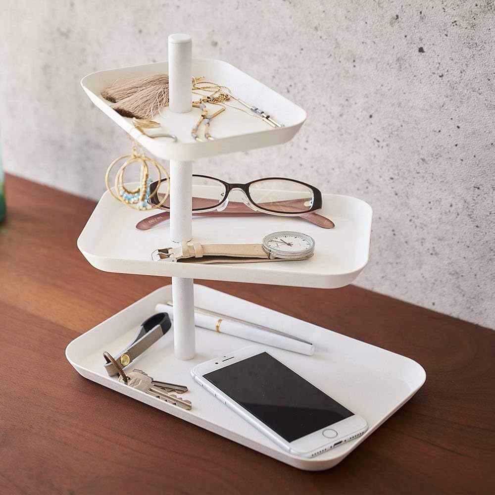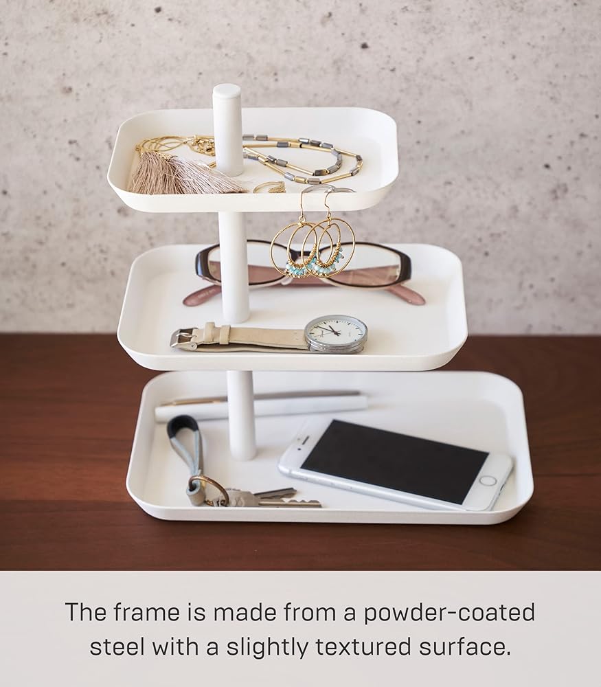 YAMAZAKI home 4724 3-Tier Accessory Tray-Jewelry Holder & Storage Organizer, One Size, White