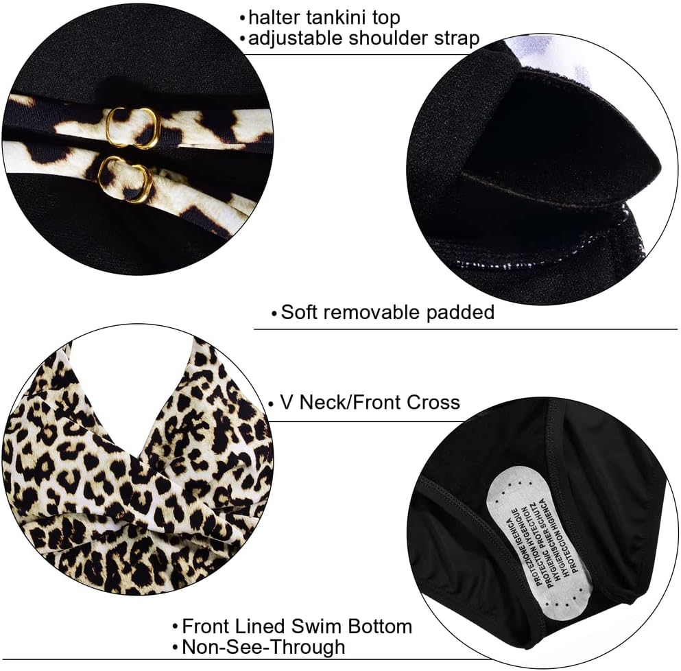 Tankini bathing suits for women: This tankini sets includes black tankini top and swim bottom, offers great coverage, makes this two piece tummy control swimsuits flattering and stylish.