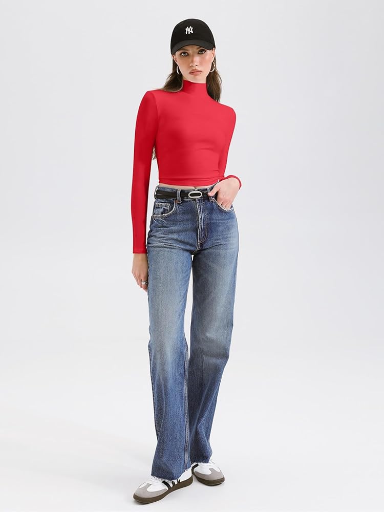 🌸This long sleeve fitted cropped top is not too short,great to wear on its own to going out or as a layering piece.Fits like a glove,basic but sexy.