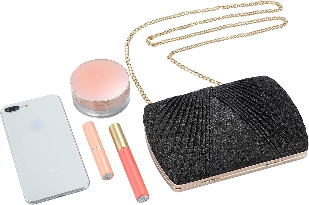 【CAPACITY】: Gold evening bag has enough room for your valuable thing,such as cell phone,small wallet,mirror,lipstick,makeups,cash,credit card,car keys,and so on.
