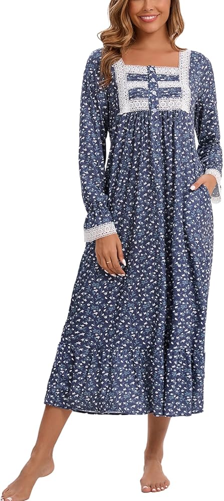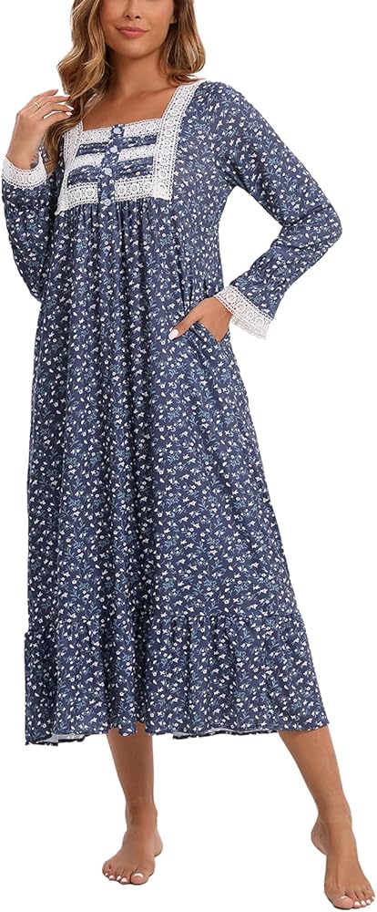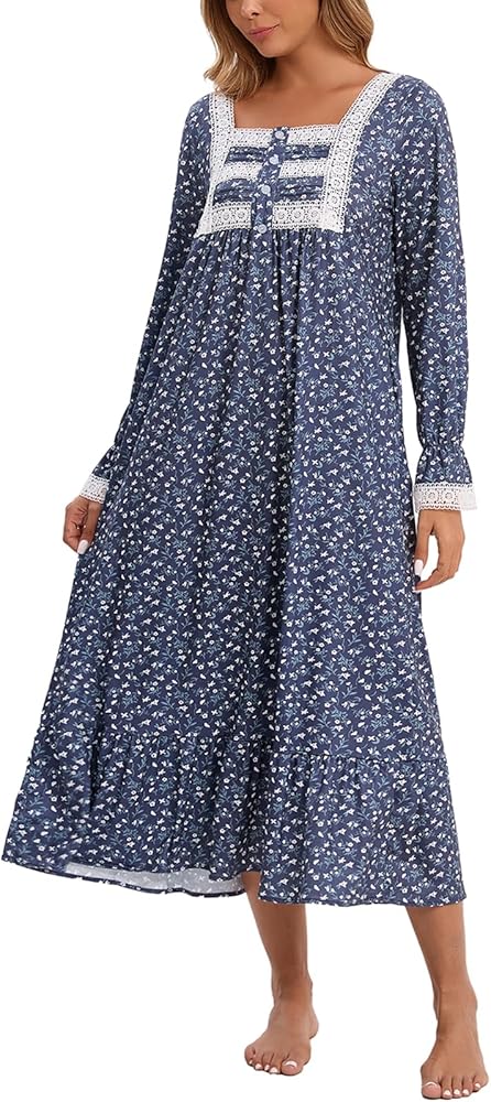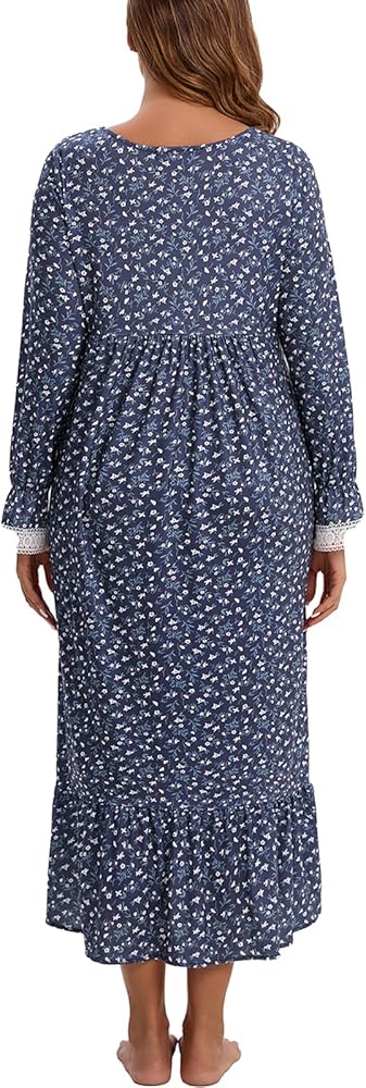 【Vinatge Long Sleeve Nightgown】This Ankle Length Pajama Dress allows your body to stay warm without suffocating you. The elegant sway of the nightgown while you walk provides loose zone to your legs when you are ready to lay down the garment settles over you like a soft blanket. It might be the most comfortable nightgown you've ever worn.