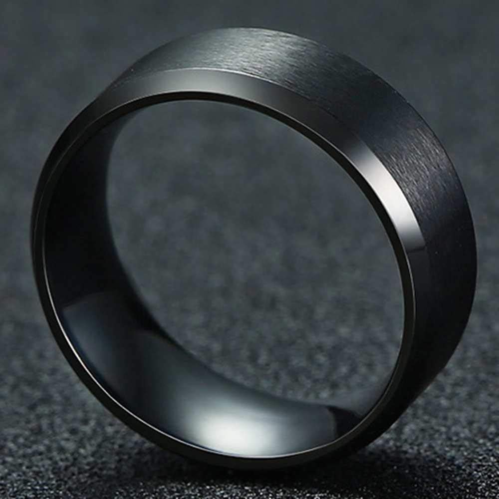 JUDE Jewelers 8mm Brushed Matte Black Titanium Stainless Steel Classical Simple Plain Ring Wedding Band