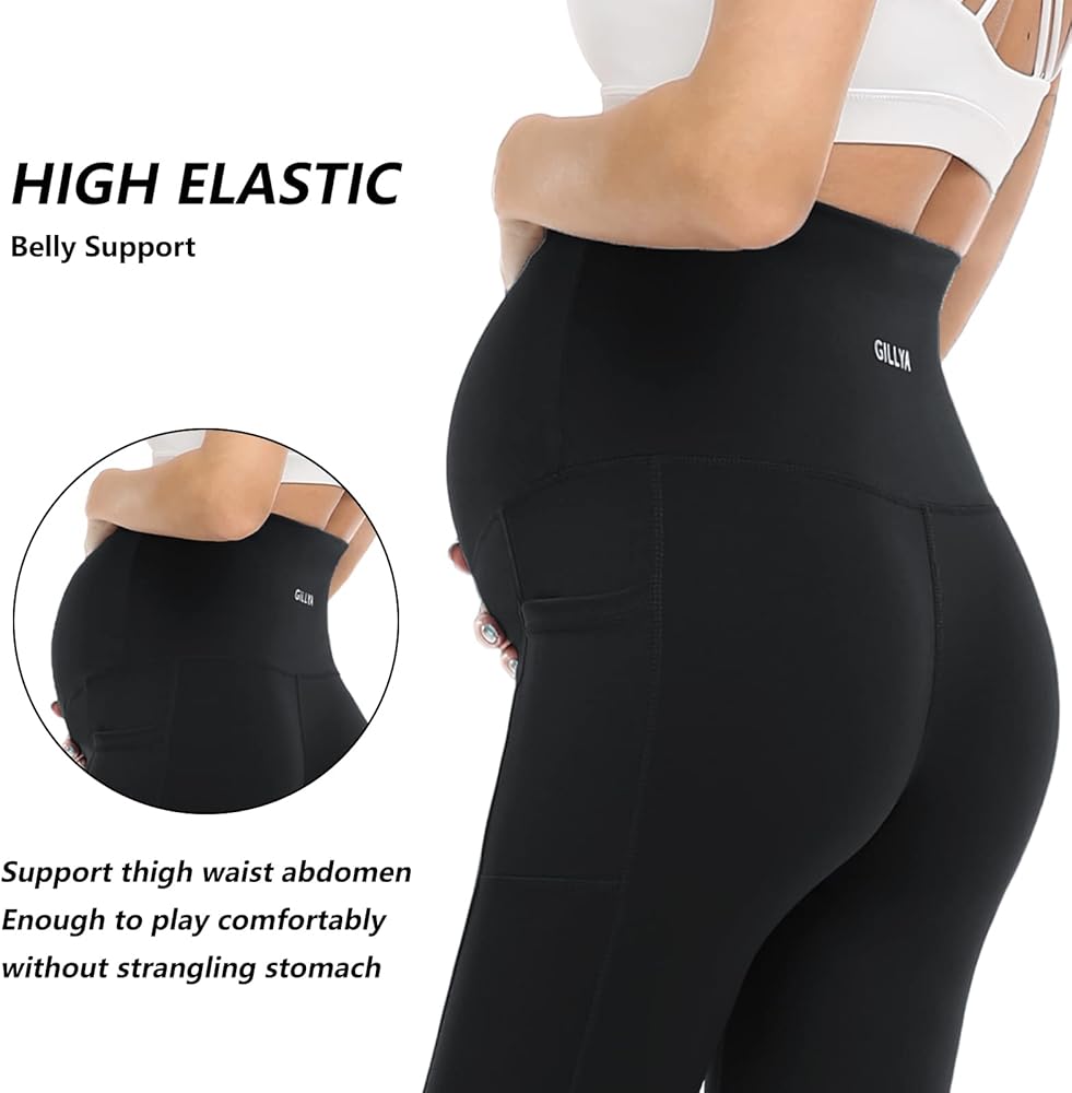 ✔COMFORTABLE & NON SEE-THROUGH FABRIC:GILLYA maternity leggings over the belly made from 4 way stretch breathable material.Buttery soft,stretchy and breathable,moisture-wicking,gentle compression.Maternity leggings are lightweight but not see-through.