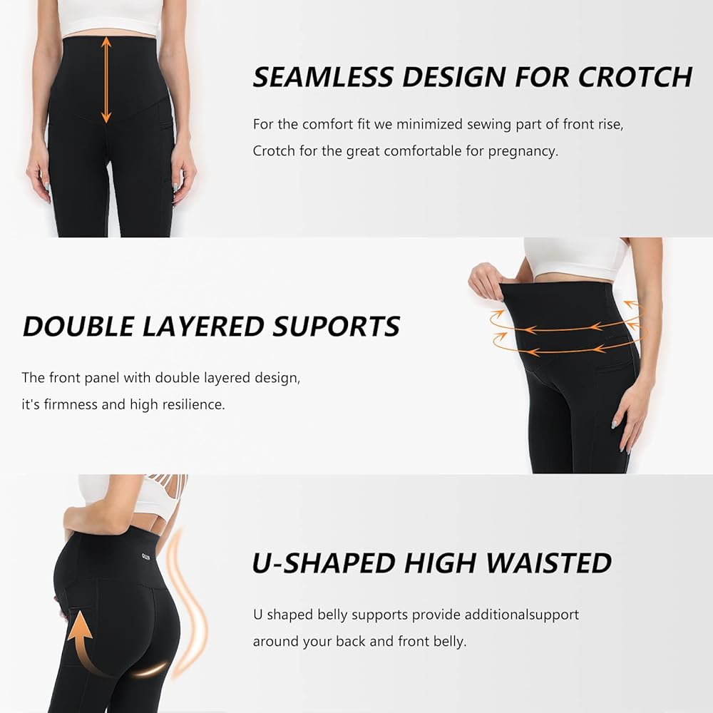 ✔PLENTY OF ROOM FOR BELLY GROWTH: Our maternity compression leggings designed with special u-shaped high waist design,high elastic over bump panel to provide a smooth fit and enough space and follow the changes of your body and stay with you throughout your pregnancy.It grow with your bump,and offers additional support around your back and belly.