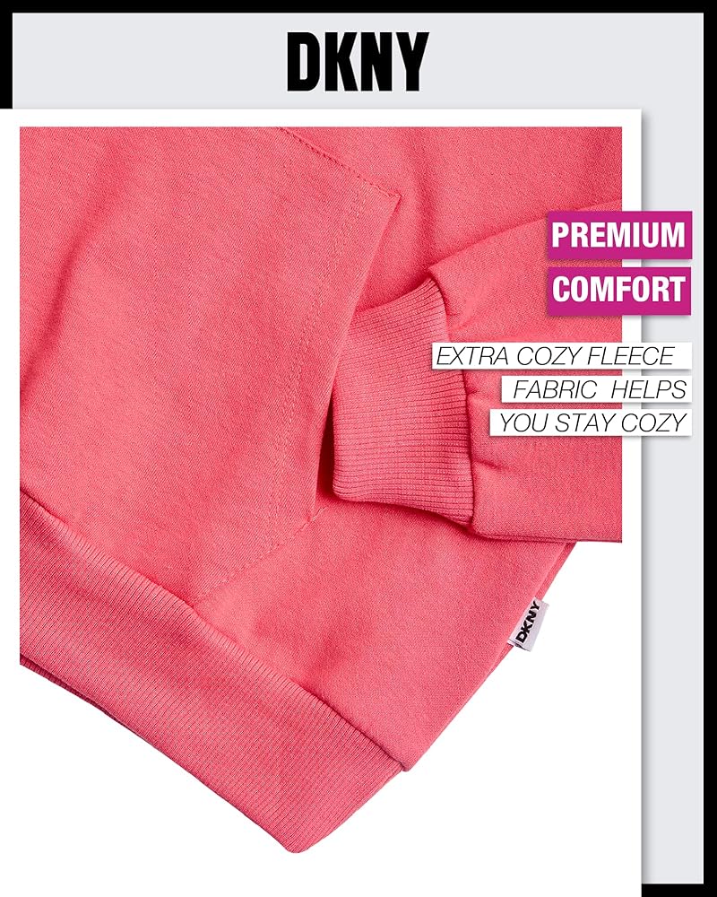 DKNY Girls' Jogger Set - 2 Piece Sweatshirt and Joggers Kids Clothing Set is a great addition to your girl's wardrobe. Made of extra soft fabric for a great feel and perfect fit, this girls' jogger set features extra soft pull-on sweatpants and a comfortable hoodie. COMFORTABLE: Functional and lightweight joggers for active girls, perfect also as casual loungewear. Match them with the roomy sweatshirt for a truly outstanding outfit. DURABLE MATERIAL: Whether she is off to school or hanging out with friends wearing this jogger set, you won't have to worry about ripping and fading. PROPER FIT: The elastic waistband provides a snug and great fit that won't restrict her movement. ADORABLE DESIGNS: This girls' jogger set is stamped with the classic DKNY logo ensuring superb quality and remarkable comfort. EASY TO CLEAN: Simply machine wash and tumble dry; Please Reference the Variations for all Available Sizes and Colors. DKNY Offers Premium Clothing at Affordable Prices because we value every customer that visits our listings! Stop by Our Storefront to See the Rest of Our Great Deals; we're confident you're going to find items that anyone who needs a gift will really appreciate!