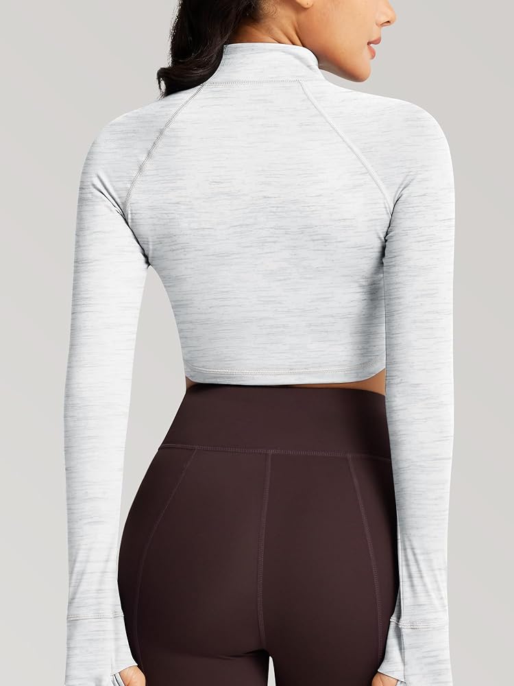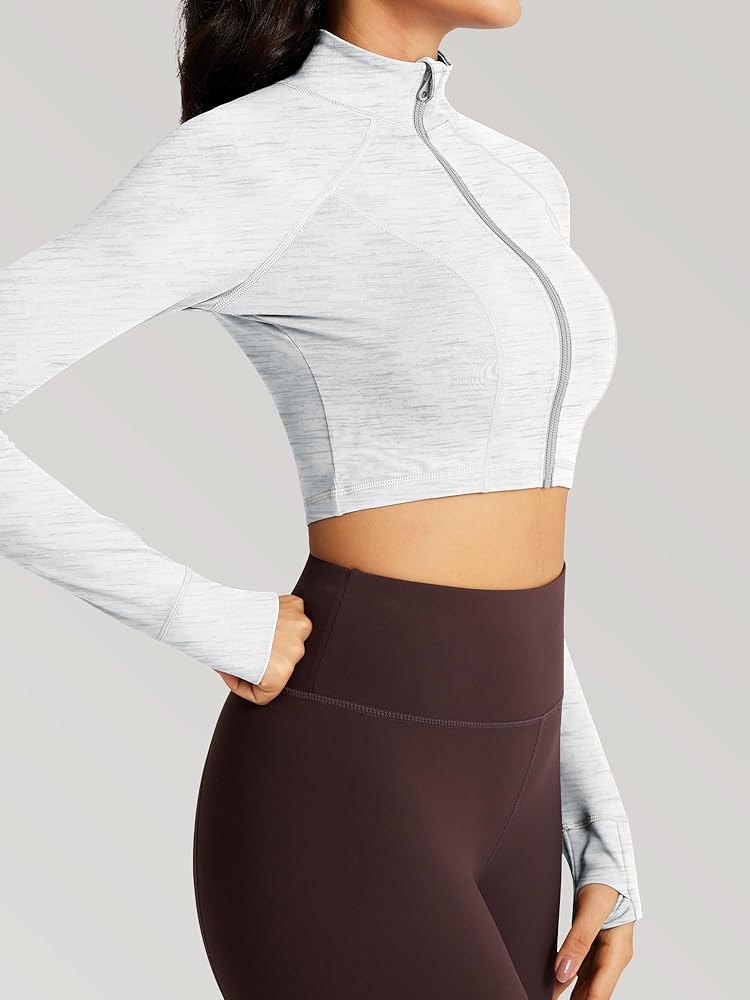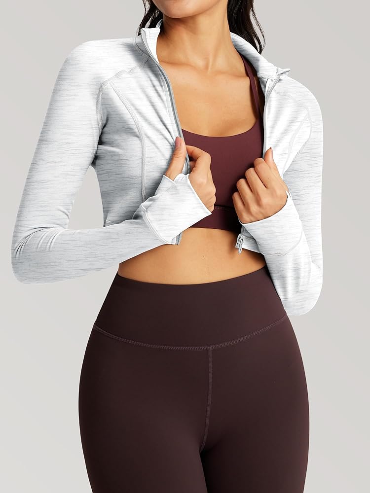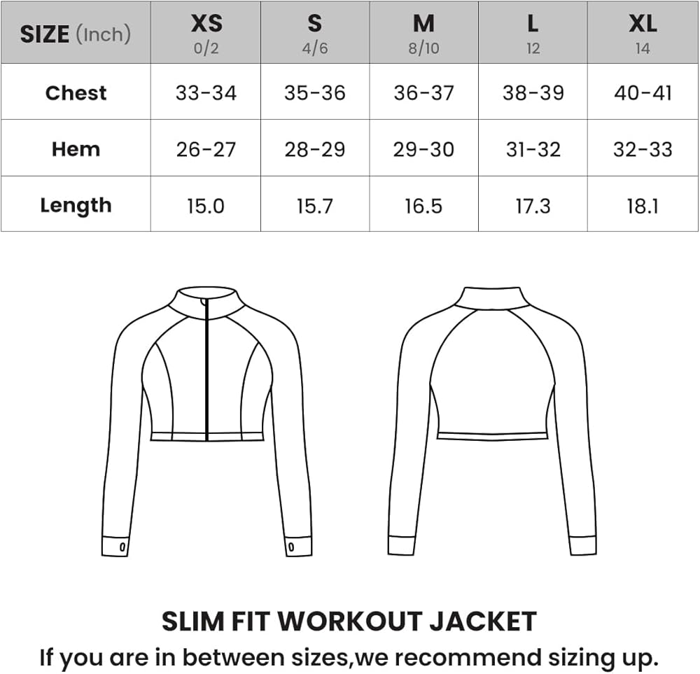 Gym jacket: The breathable, four-way stretch fabric makes it ideal for pre, post and during all workouts. The long sleeve workout crop top is perfect solo or layered under outerwear.