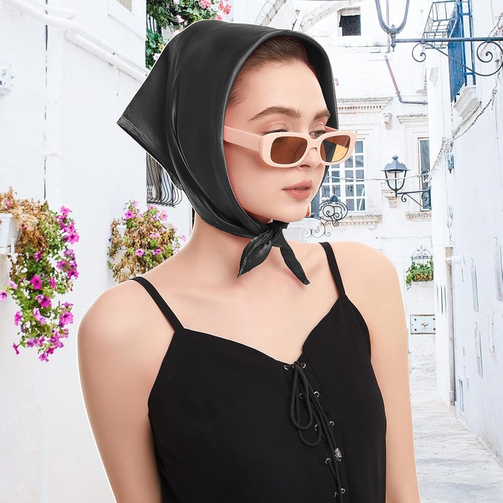 ⇒ Size: The size of each pure color satin hair scarf is approximately 23.5 × 23.5 inches / 60 × 60 cm. The appropriate size allows it to be tied into a variety of styles.