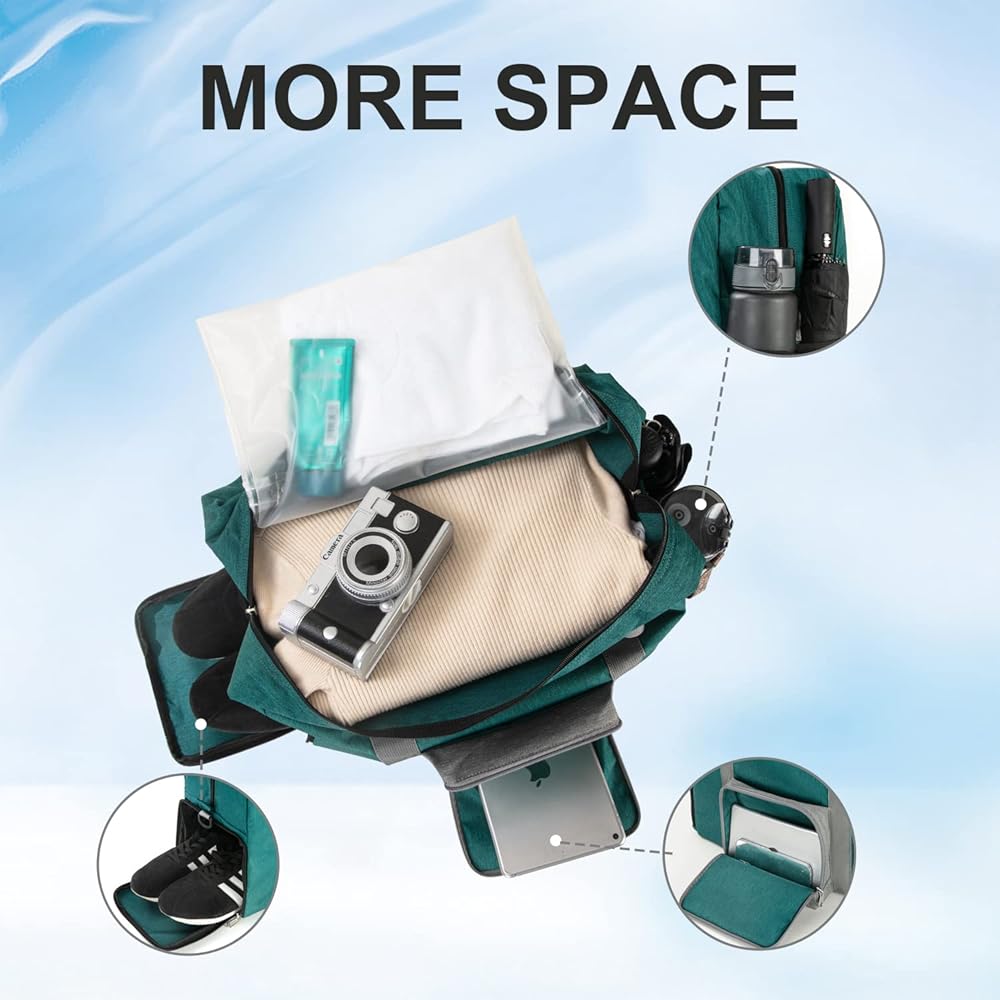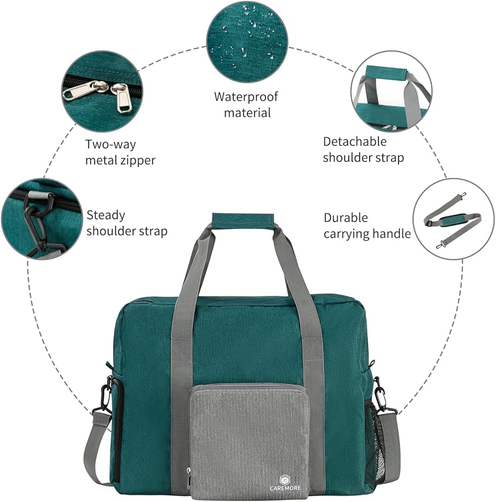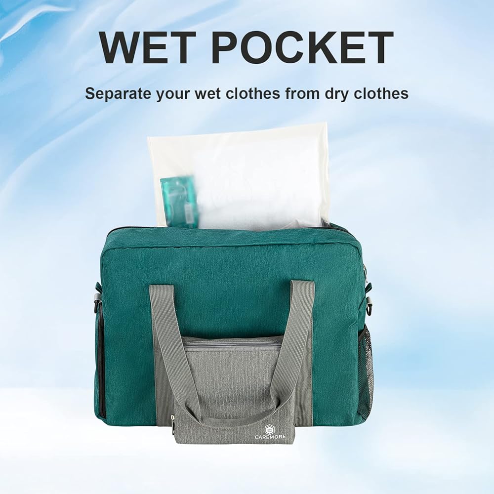 Travel duffel Gym Bag with Shoe Compartment, Foldable Underseat Carry On Bag for Spirit Airlines Personal Item Bag 18X14X8, Swim Sports Gym Bags for Men Women Weekend Overnight Bag Waterproof Material