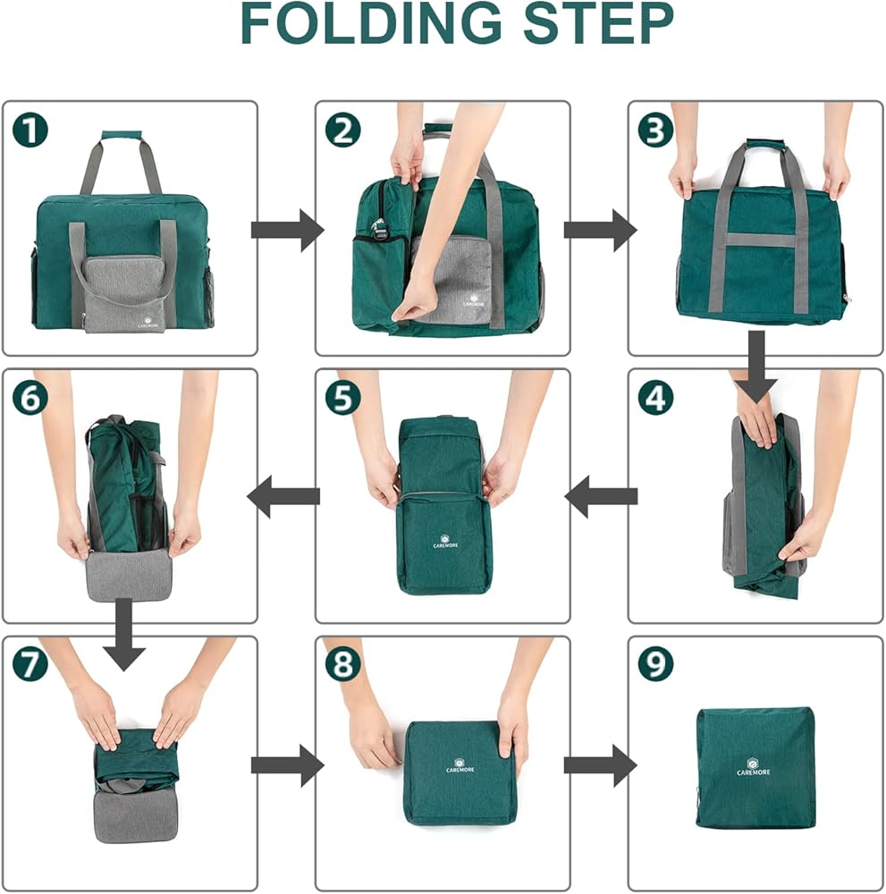 Foldable & Waterproof & Washable & Durable & Comfortable: This gym bag is made of 100% nylon, the material is waterproof, washable and durable; in addition, it's foldable, you can easily fold this gym bag back into the little pocket at the front of the gym bag; it has double handles and an adjustable, detachable shoulder strap with padded, which makes you carry the luggage comfortably.