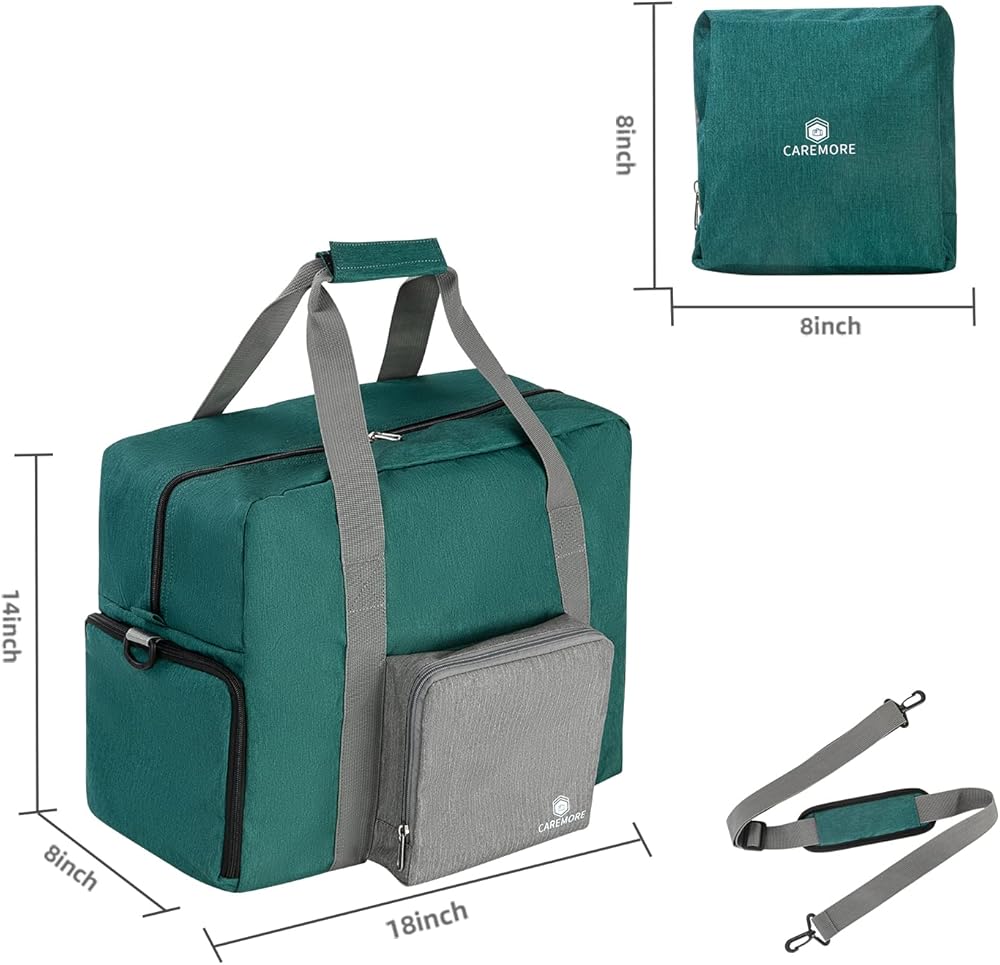 Carry-on Size For Airplanes & Carry And Transport Easily: The duffle bag's size is 18*14*6 inches, it is a carry-on bag for airplanes; it has an unique pocket allows the bag to slide over the luggage handle and to be fixed on the trolley case for transporting easily; in addition, it has double handles and an adjustable, detachable shoulder strap with padded, you can carry on it by the bag's double handles, over your shoulder, or behind your back .