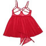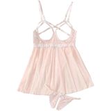 Contrast Lace Cut Out Mesh Lingerie Slips and Thong