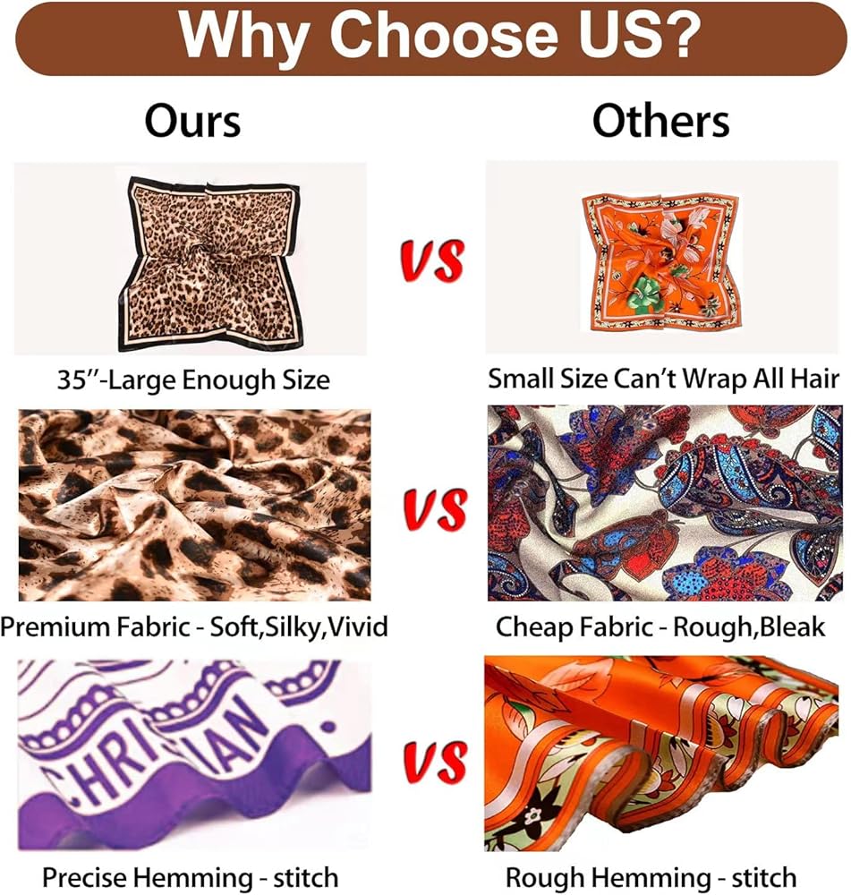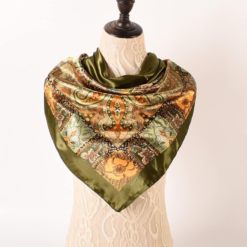USAGE:These satin headscarf are the perfect accent to any outfit. Can be worn around your neck, head, waist, or hair as well as on a hat or handbag and so on.It can stop wind and sand, shade sunshine, keep warm. This hair scarf can be used all year round. You can tie it to wear as a top, and you may not imagine that it can also be hung on the wall as a decorative painting, it will make your home very distinctive. You can use it in so many different types ways.
