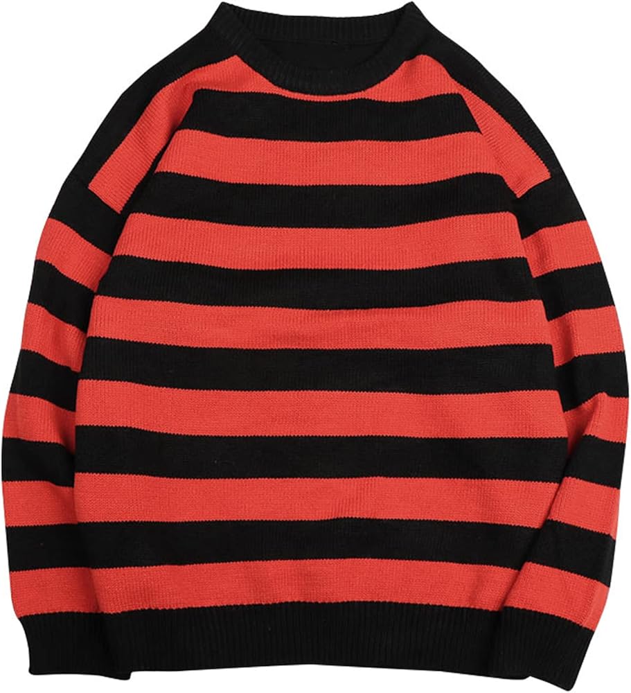 - Feature: Loose fit, Long sleeve, Stirped print, Color block, Knitted, Lightweight, Crew neck, Oversized.