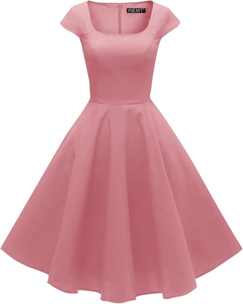 A-Line, Scoop Neck, Cap Sleeve, Lined Top, 2 Pockets, Concealed Zipper, Swing Skirted