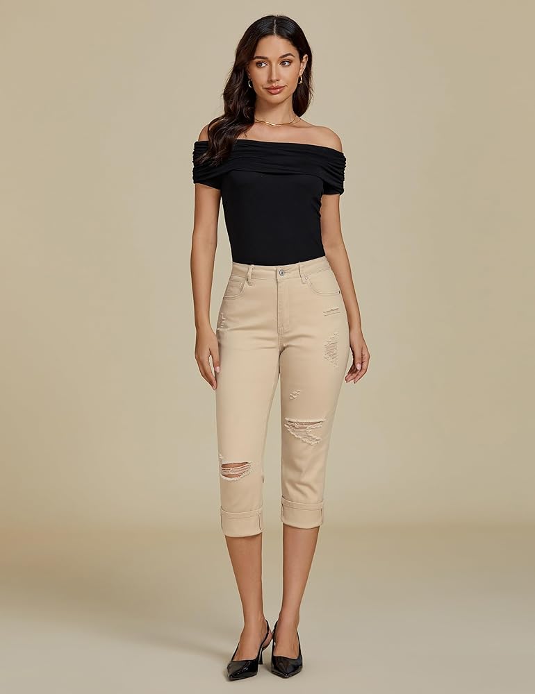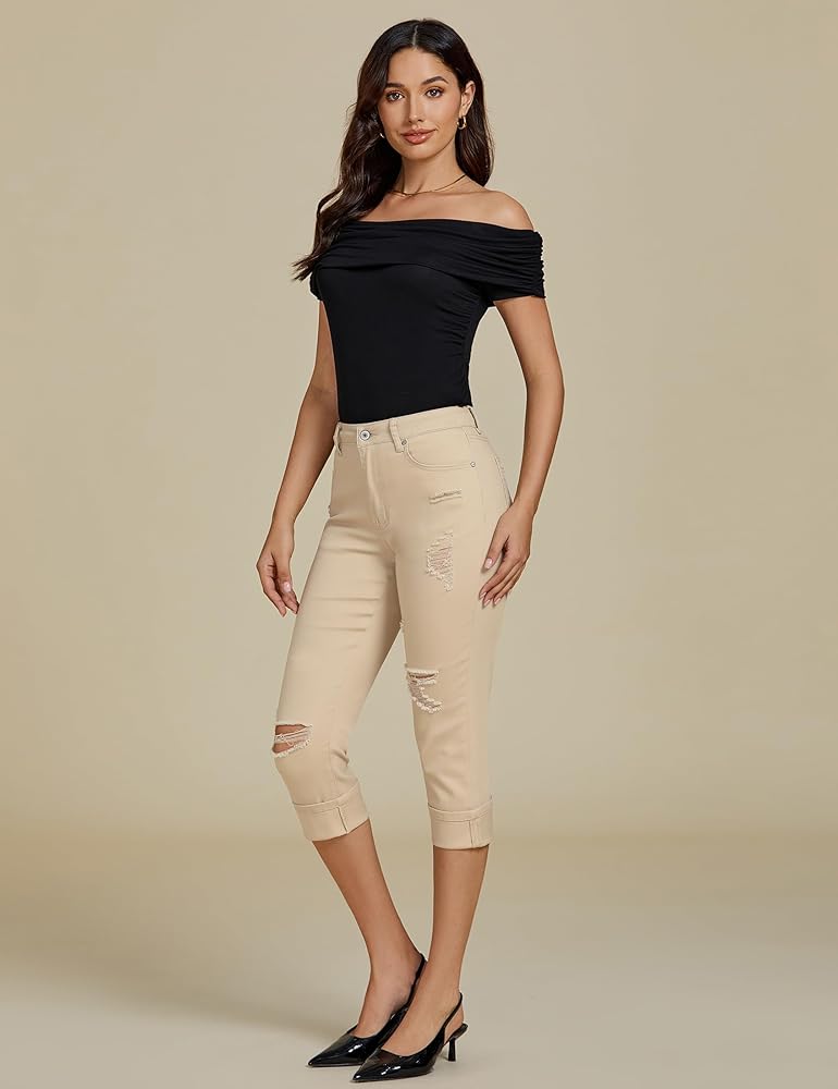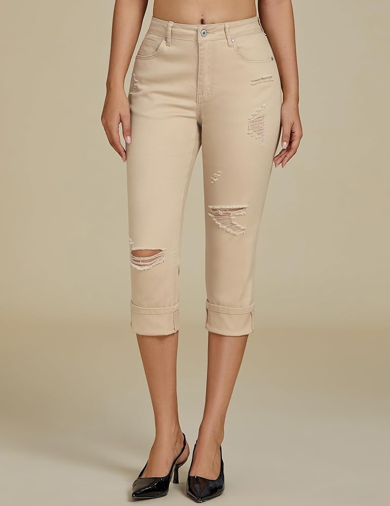 The stretch jeans for women are stretchy enough that hugs your curves and perfect for many body frames. It's easy to style this distressed jeans women rolled cuff or unrolled.